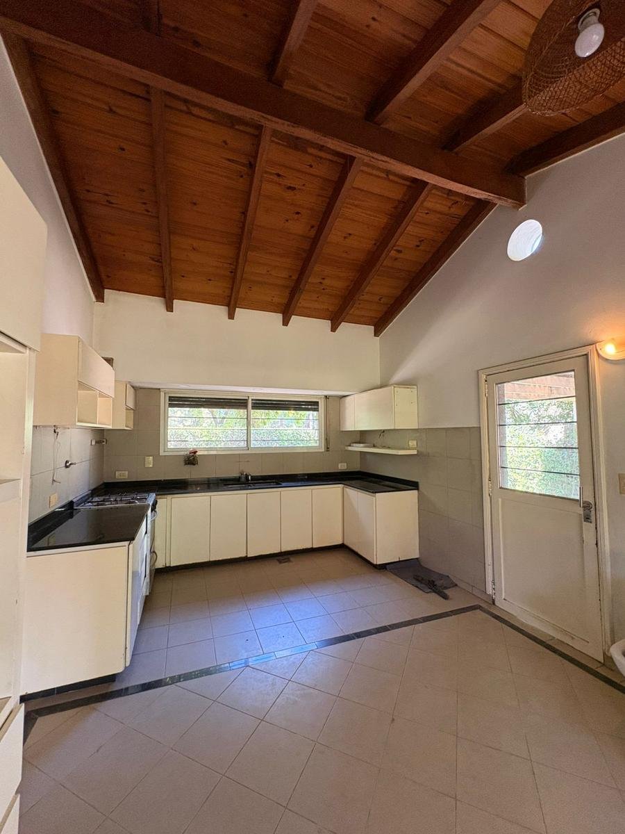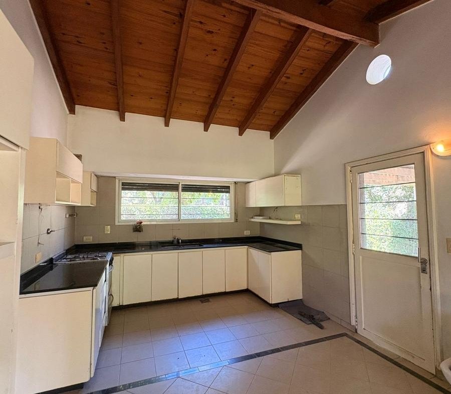 La planta baja cuenta además con toilette de recepción, lavadero independiente y una cocina separada de grandes dimensiones, equipada con abundante espacio de guardado. Desde la cocina, un amplio ventanal conecta con la galería y el sector exterior.