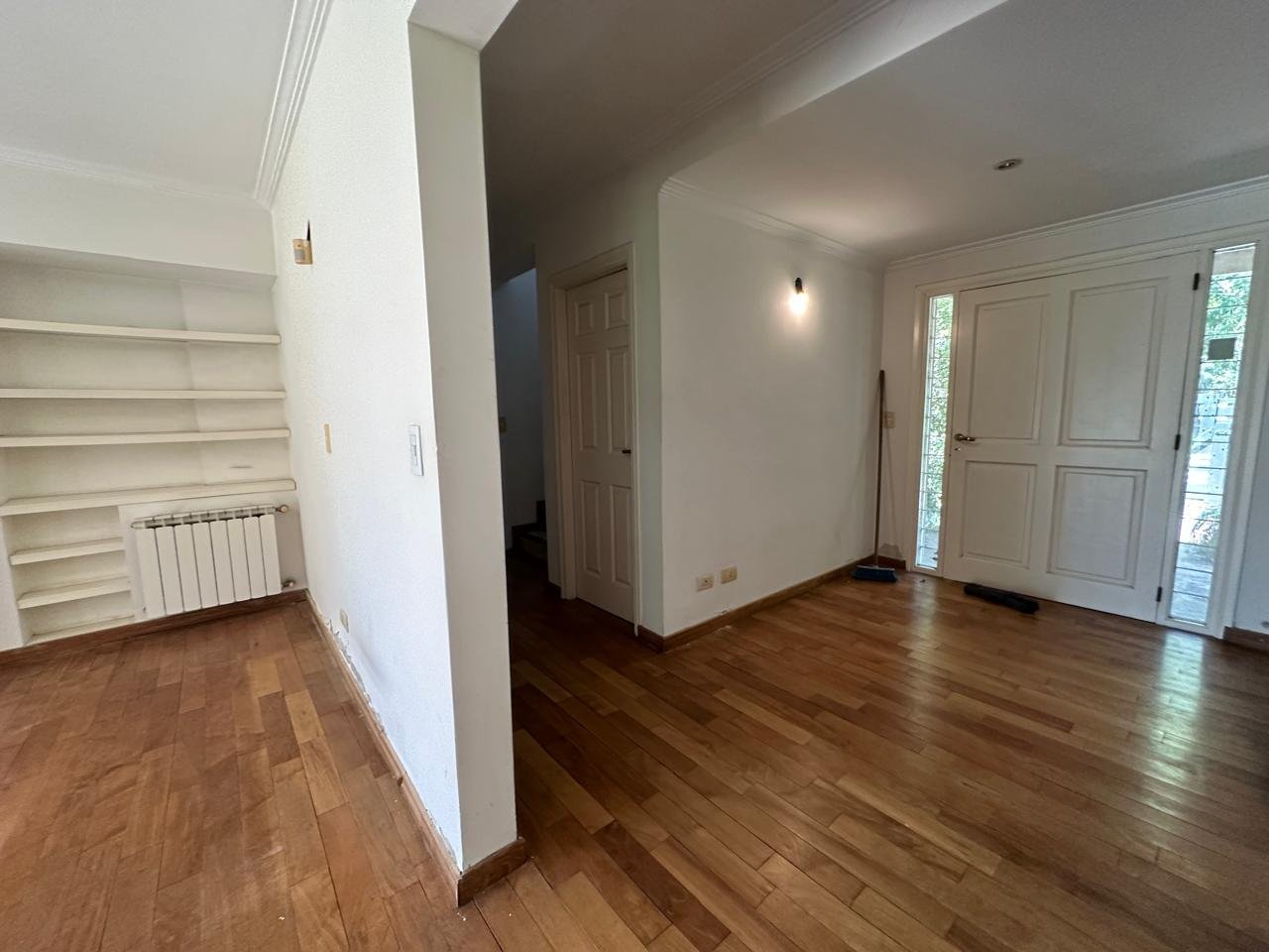 La propiedad presenta pisos hidrolaqueados en perfecto estado en todos sus ambientes, reflejando su excelente mantenimiento y calidad constructiva.