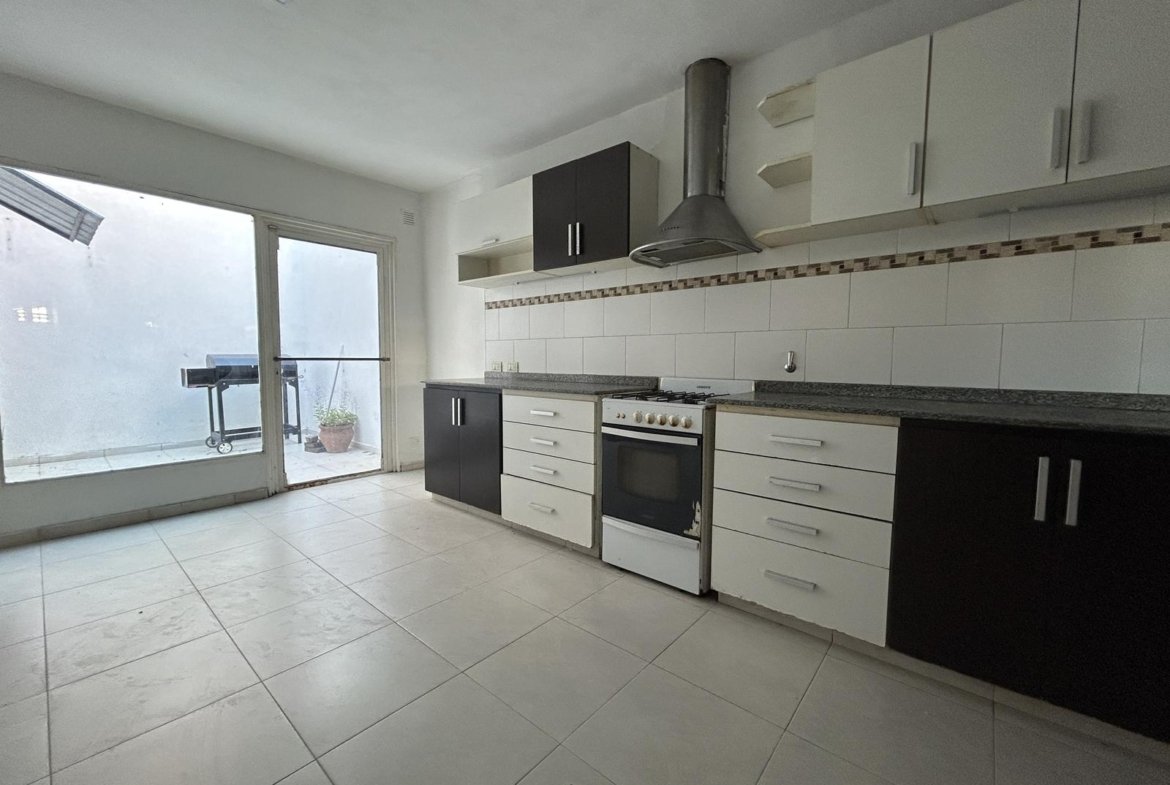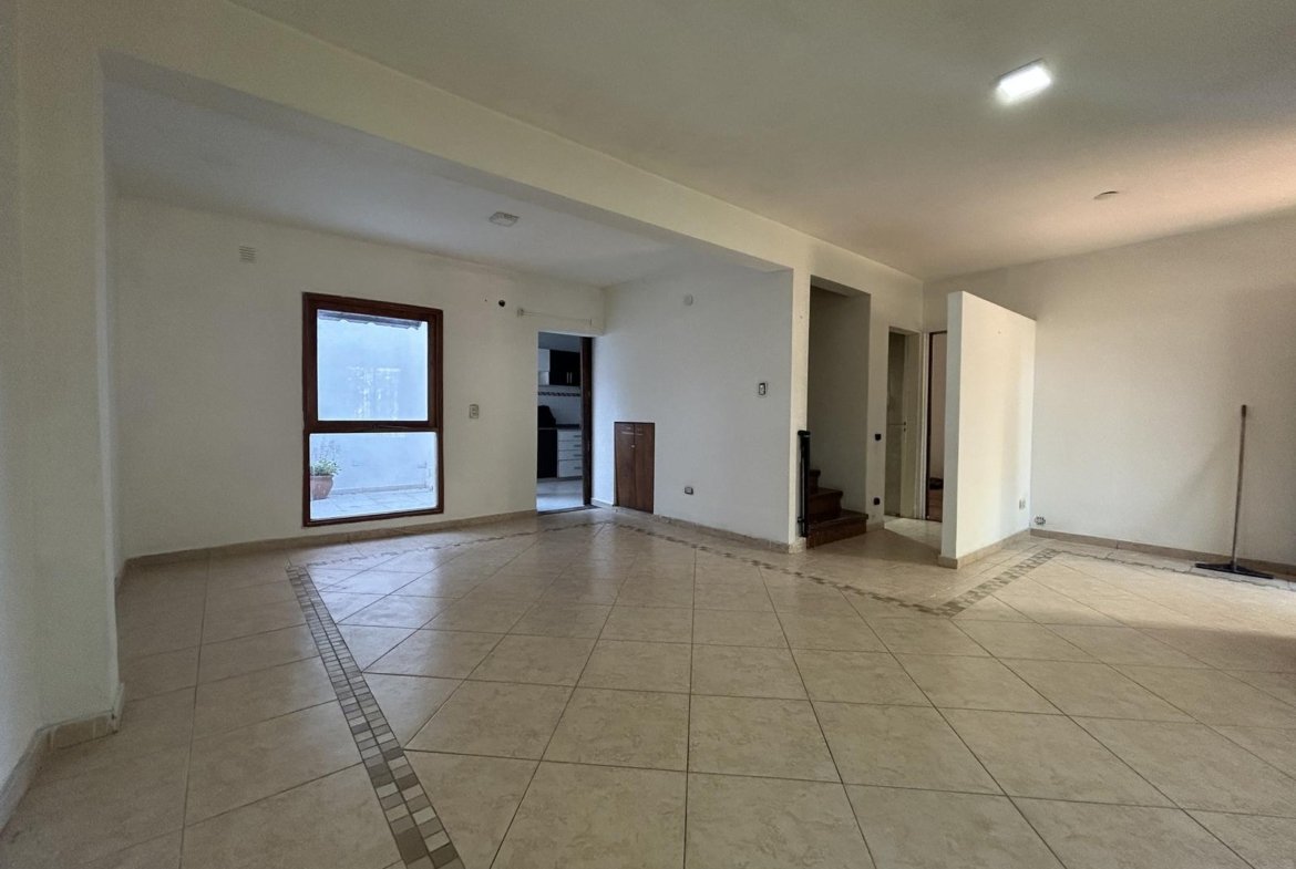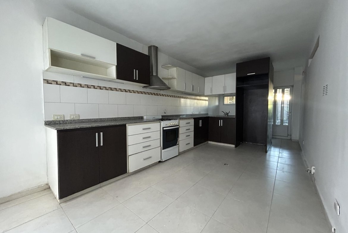 La propiedad presenta un retiro de jardín al frente, que aporta privacidad y permite disfrutar de un espacio verde adicional antes del ingreso principal. Al entrar, nos encontramos con un luminoso living-comedor de generosas dimensiones, un ambiente cálido y bien distribuido que permite organizar distintos sectores de estar y comedor. Desde este espacio se accede a la cocina independiente, totalmente separada y equipada, lo que brinda mayor comodidad y una circulación interna más organizada. Desde la cocina se accede a un pequeño patio seco con parrillero móvil, perfecto para encuentros al aire libre.