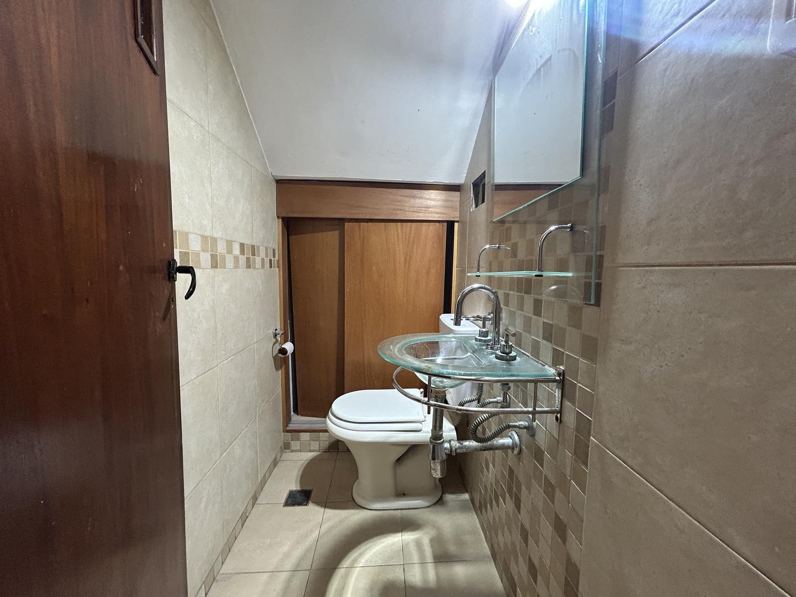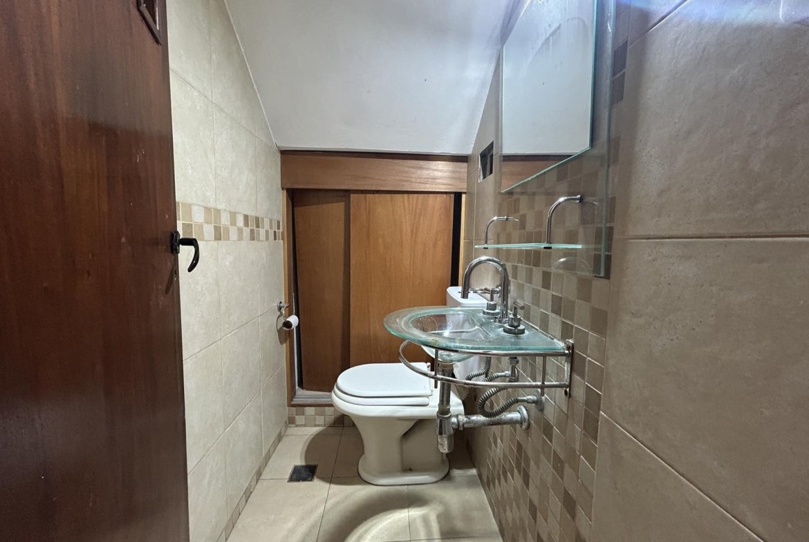 En la planta baja también se encuentra un baño de servicio, muy práctico para el uso cotidiano, y un local comercial o salón de usos múltiples, un ambiente ideal para emprendedores, profesionales o quienes necesiten un espacio adicional para trabajo, consultorio, depósito o actividades recreativas. Este espacio es funcional y de fácil mantenimiento.La planta baja se completa con una cochera cubierta, que garantiza comodidad y resguardo del vehículo.