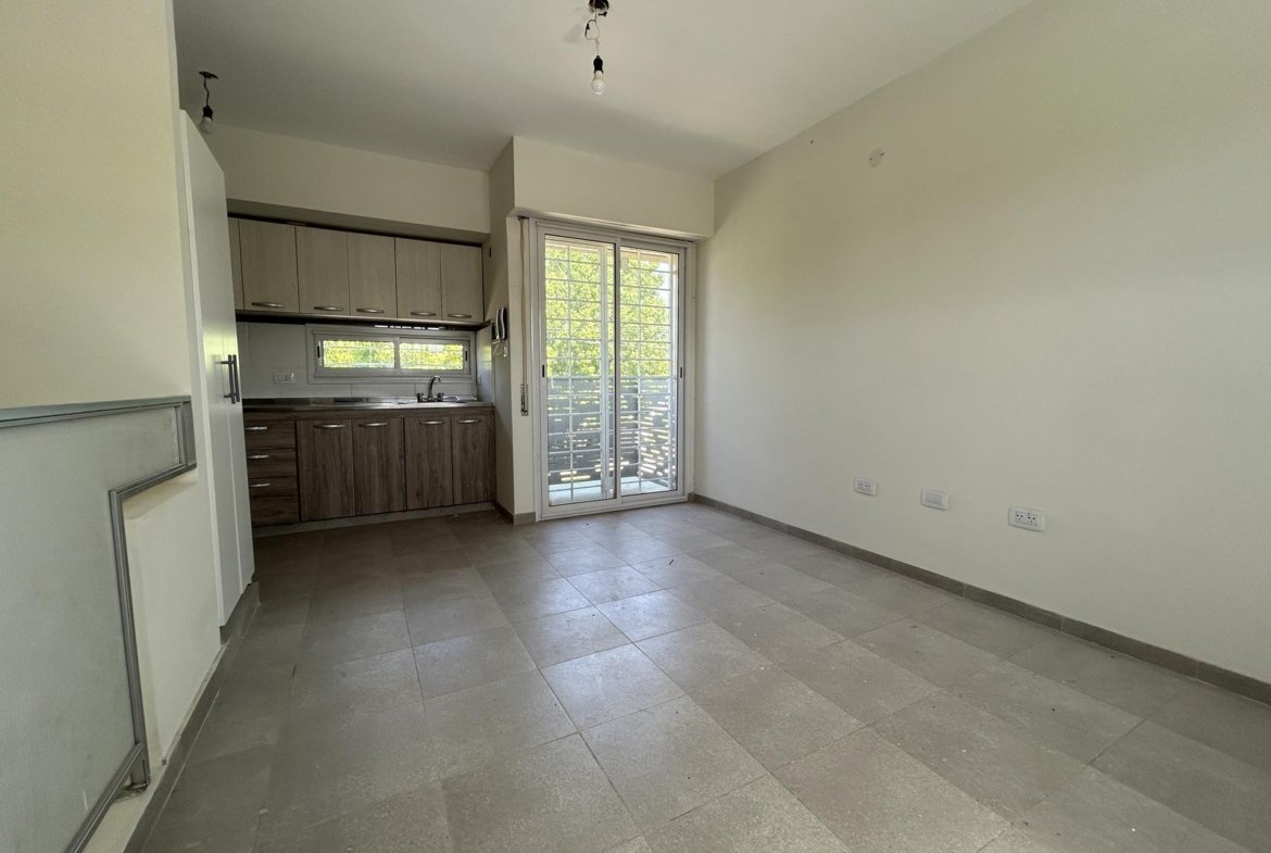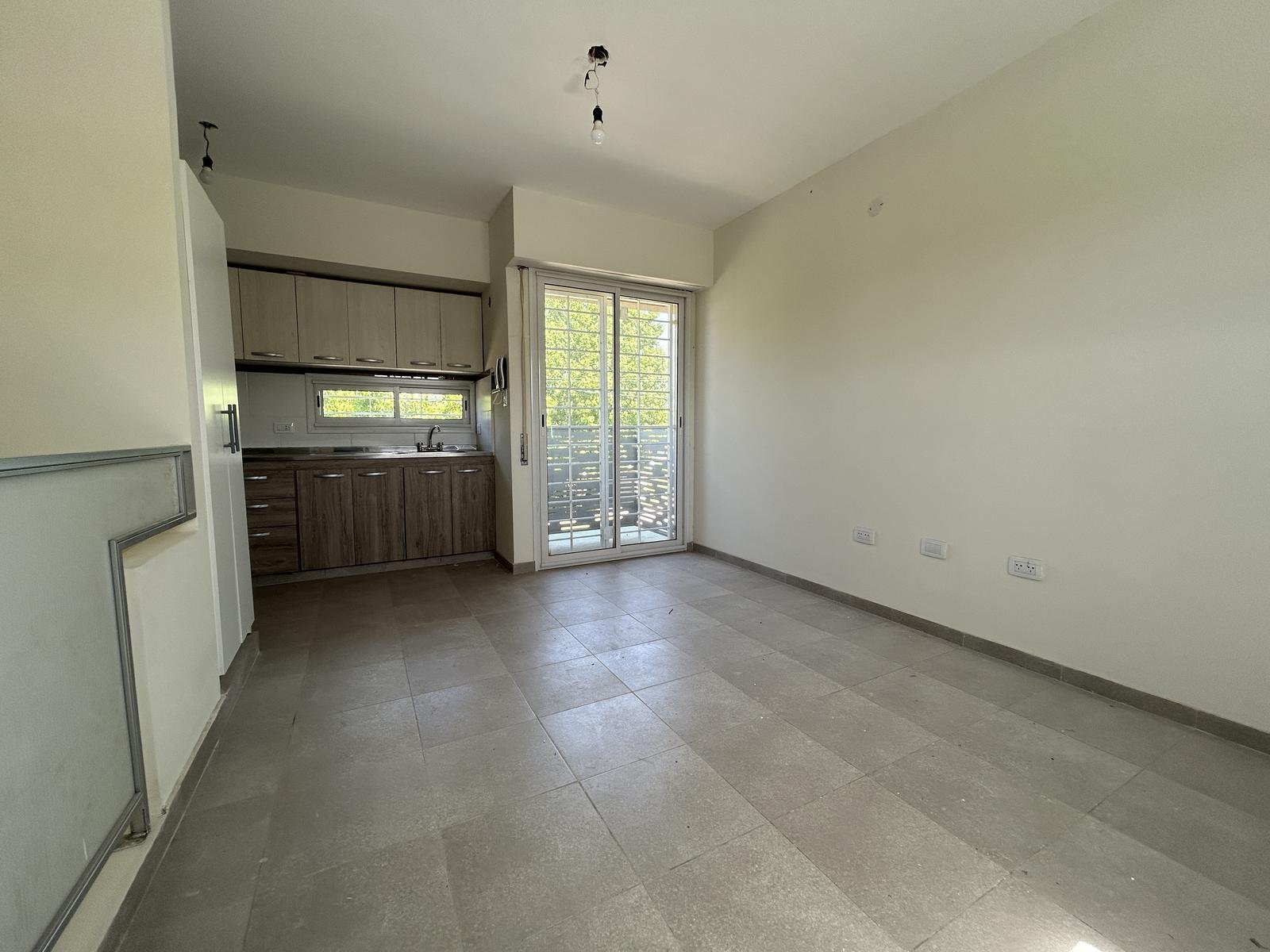 Hermoso departamento moderno y a estrenar, ubicado en planta alta con acceso por escaleras. Al ingresar, encontramos un cómodo living-comedor con cocina integrada, equipada con amplios espacios de guardado y excelente iluminación natural.El ambiente se conecta con un balcón orientado al Oeste, que cuenta con rejas de seguridad.