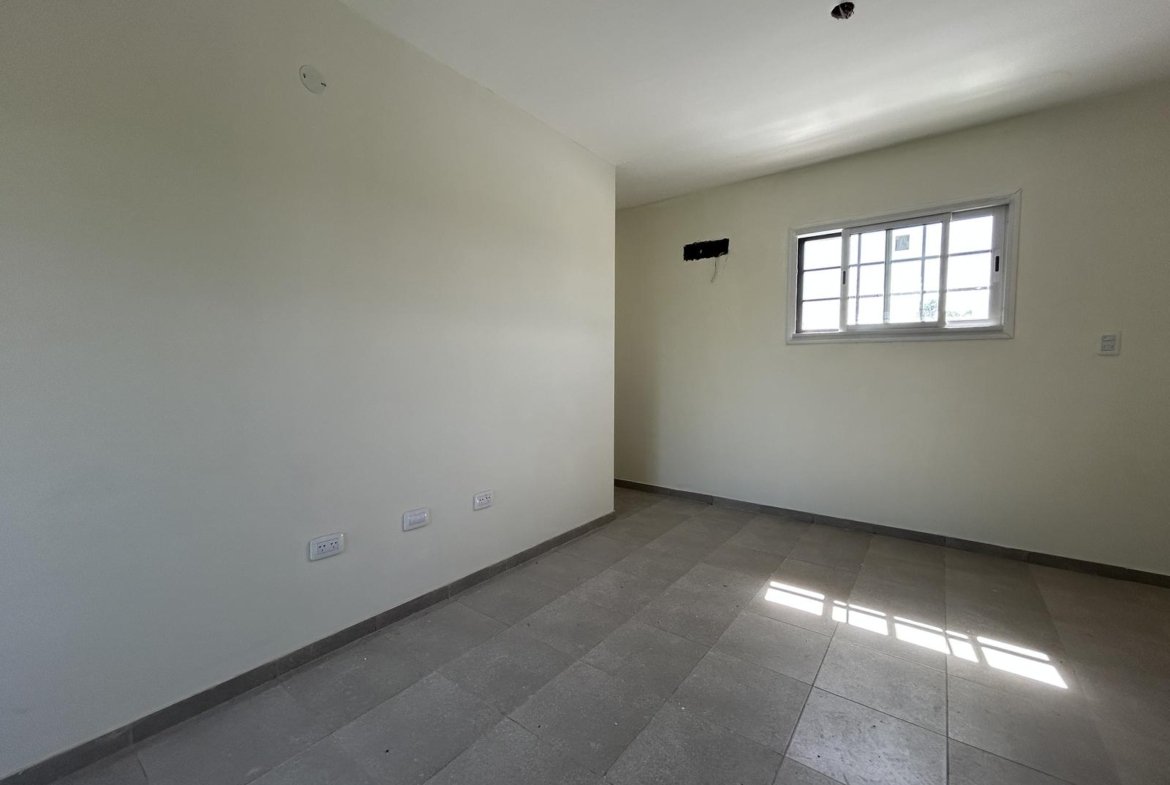 A través del paso llegamos al dormitorio, que dispone de placard, ventana con rejas de protección, y una distribución funcional.El inmueble incluye un baño completo con receptáculo de ducha.