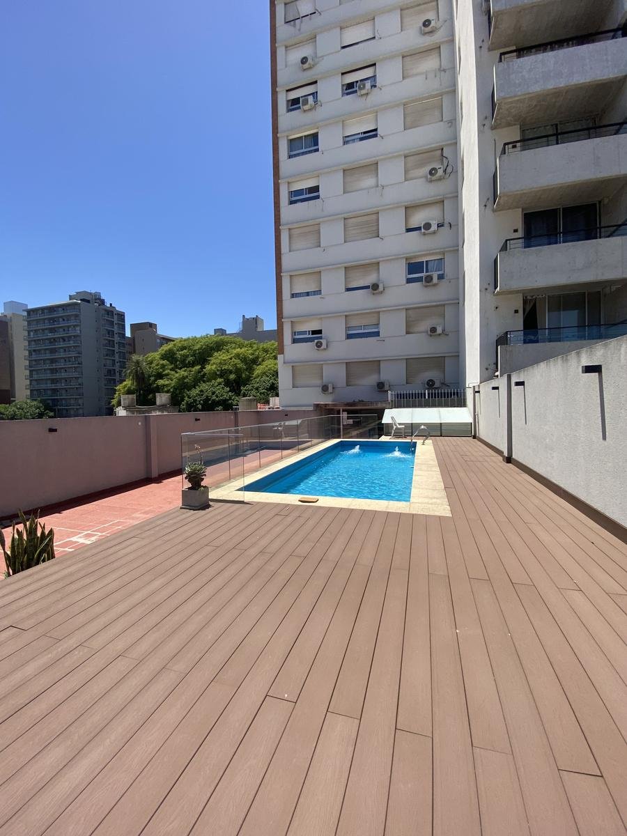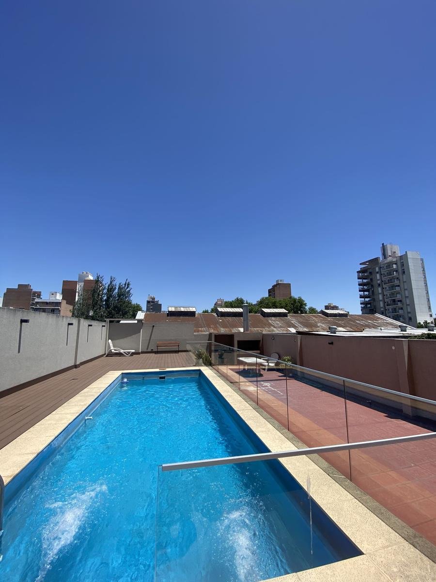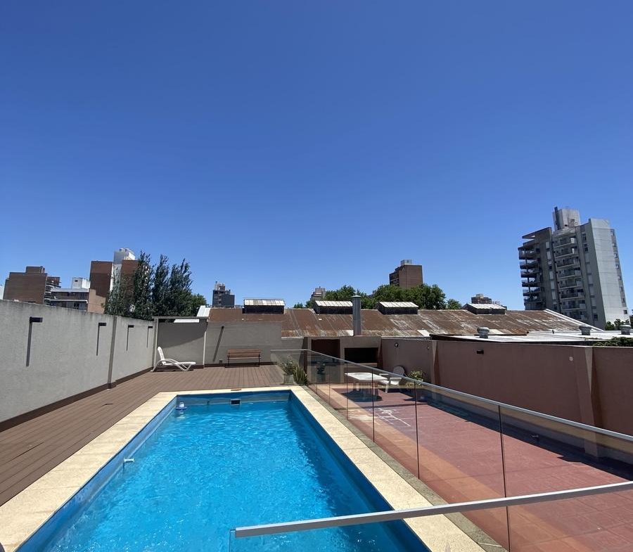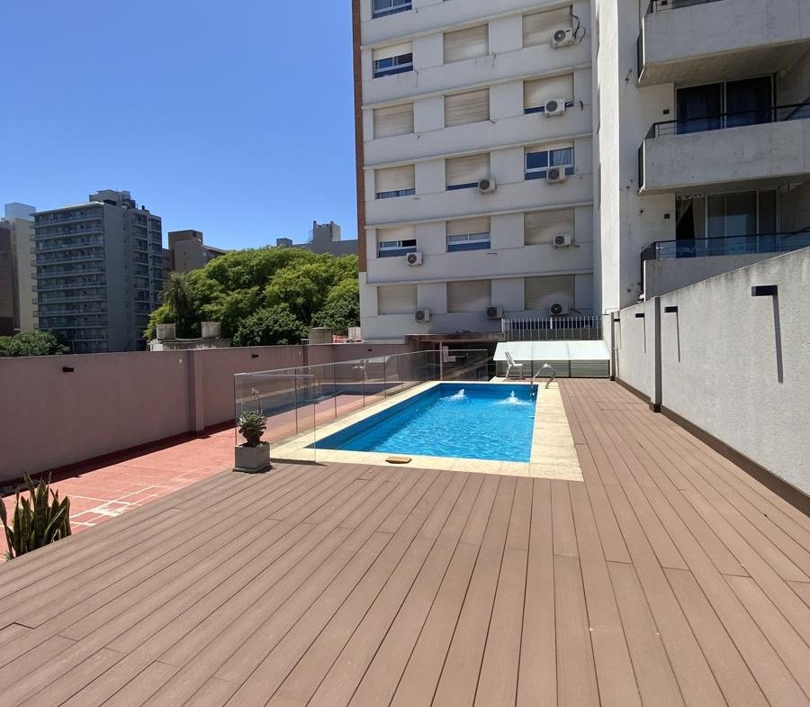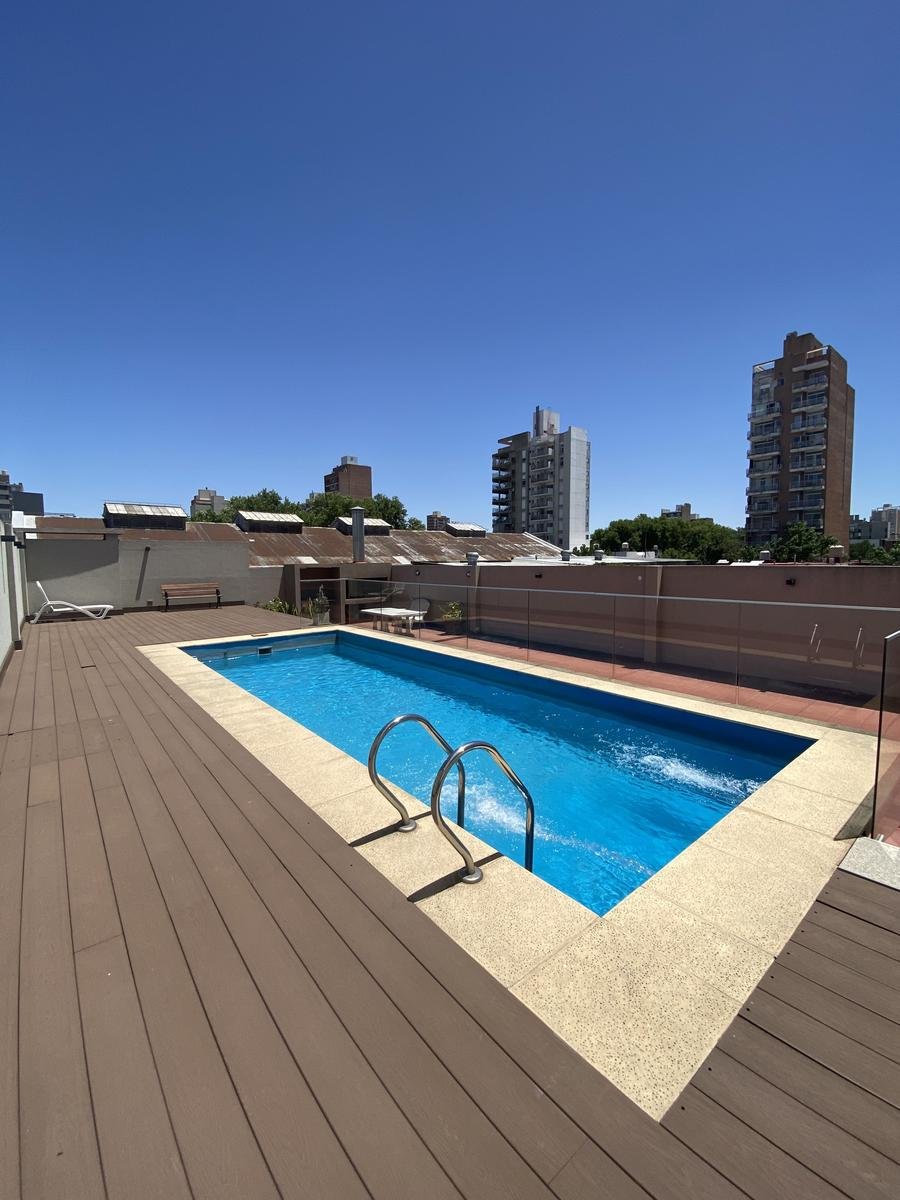 El edificio ofrece muy buenos amenities: pileta para los días de verano, parrillero de uso común para reuniones y cochera incluida, aportando comodidad y seguridad.