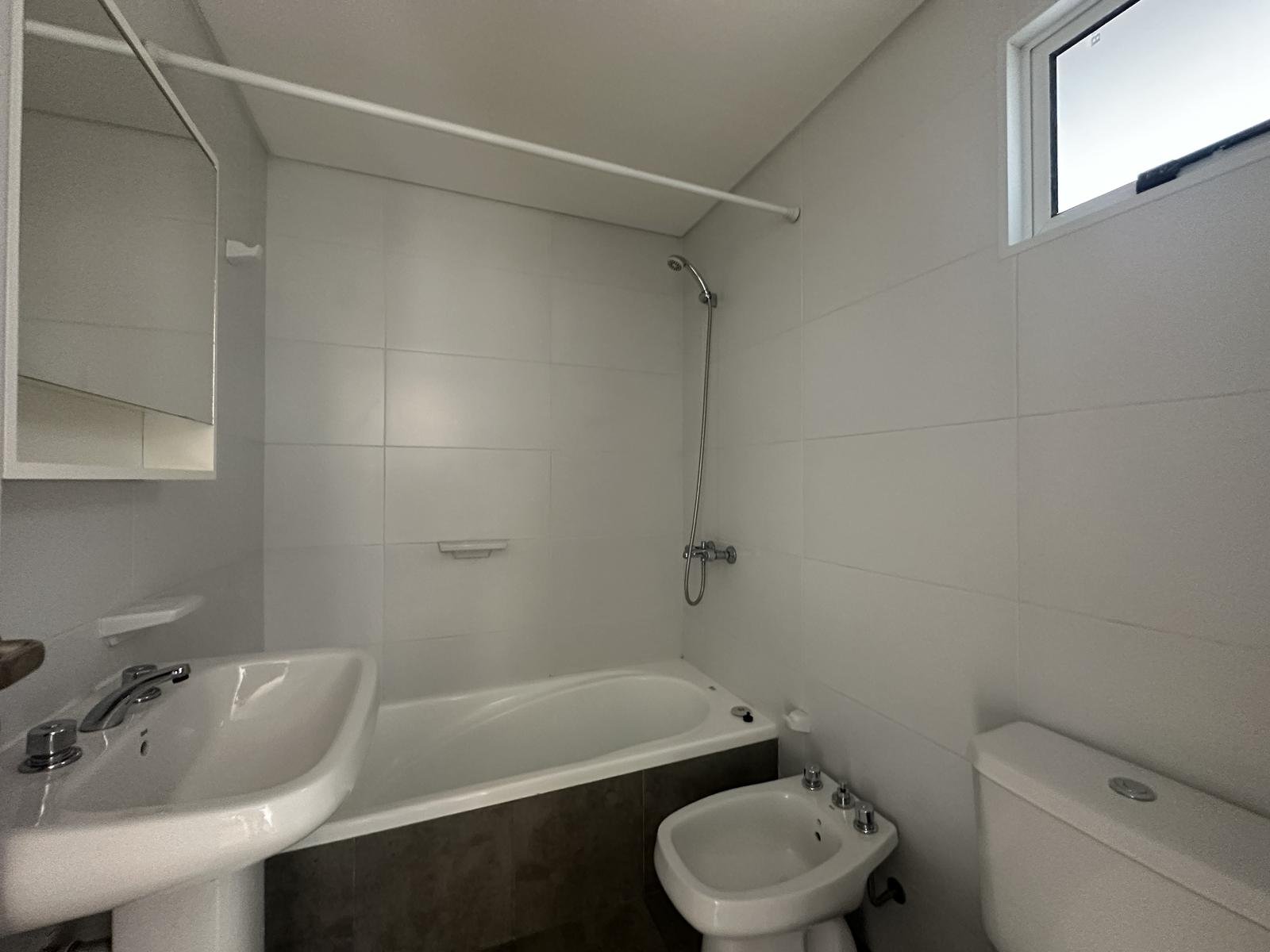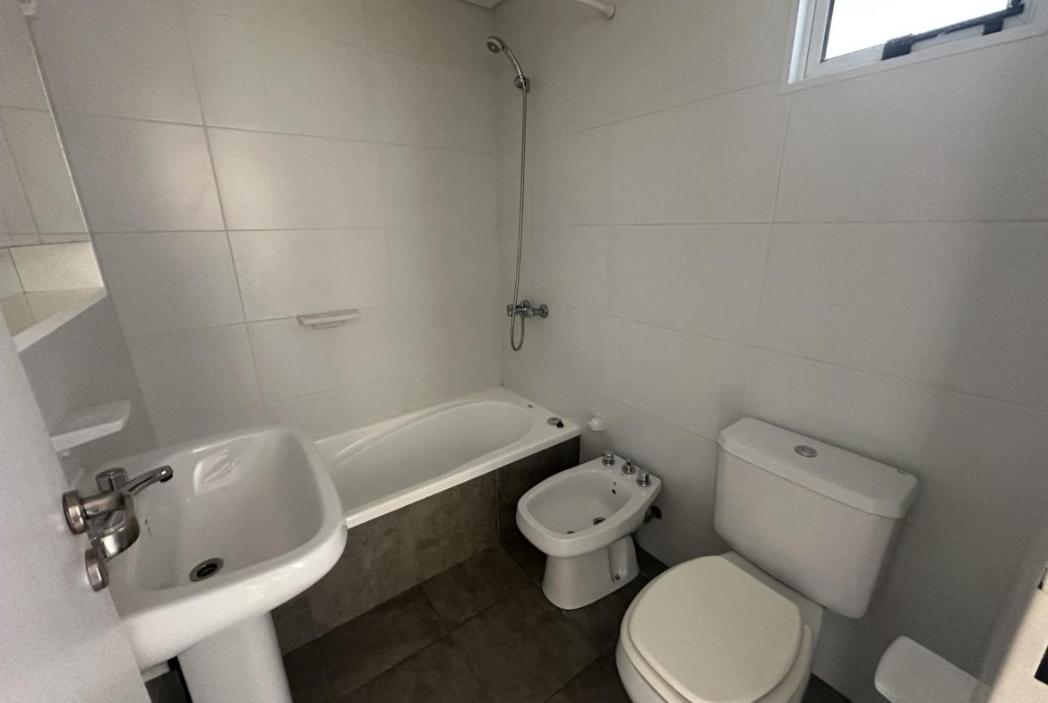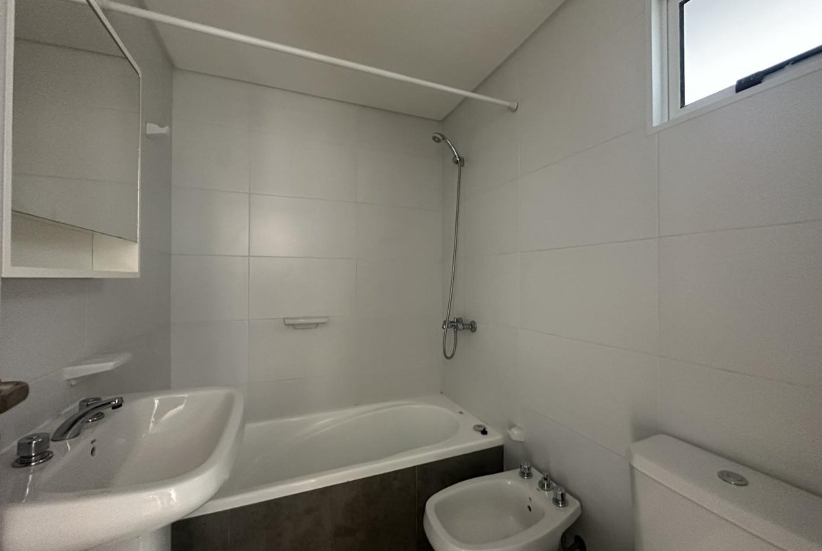 El baño es completo, con bañera y revestimientos de calidad. Los dos dormitorios son cómodos y luminosos, ambos con placares empotrados que optimizan el espacio de guardado.