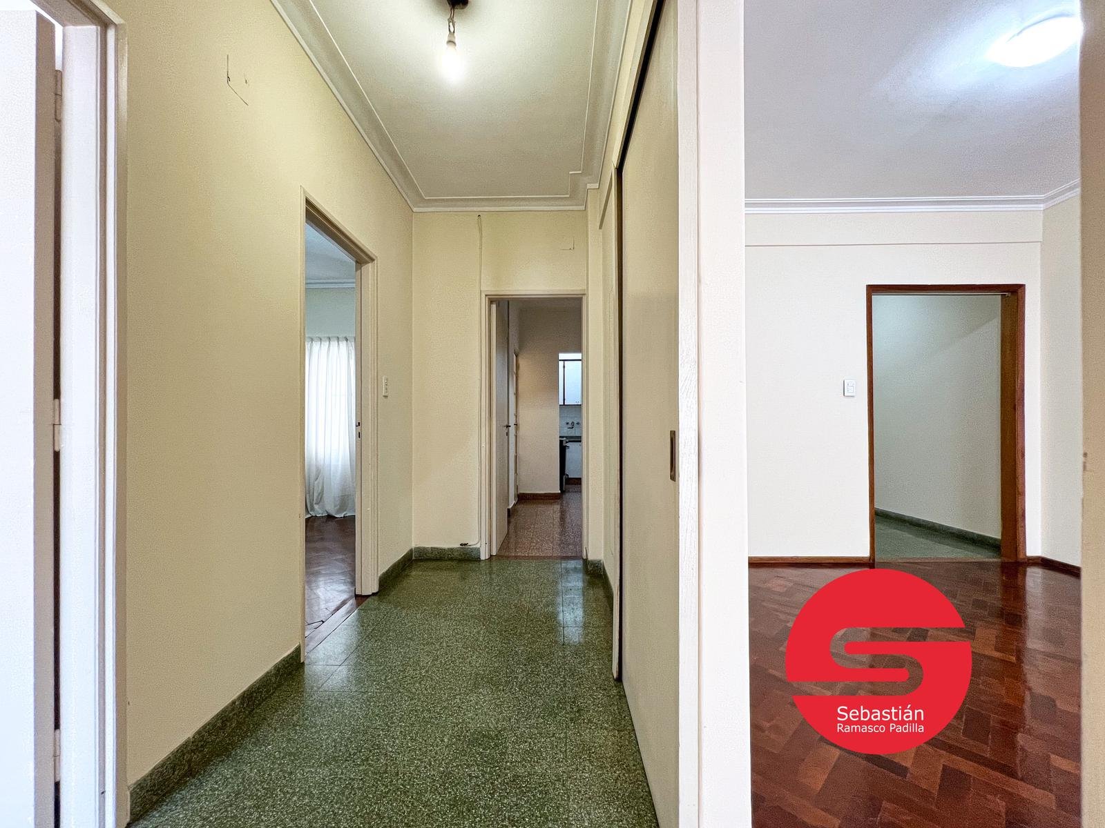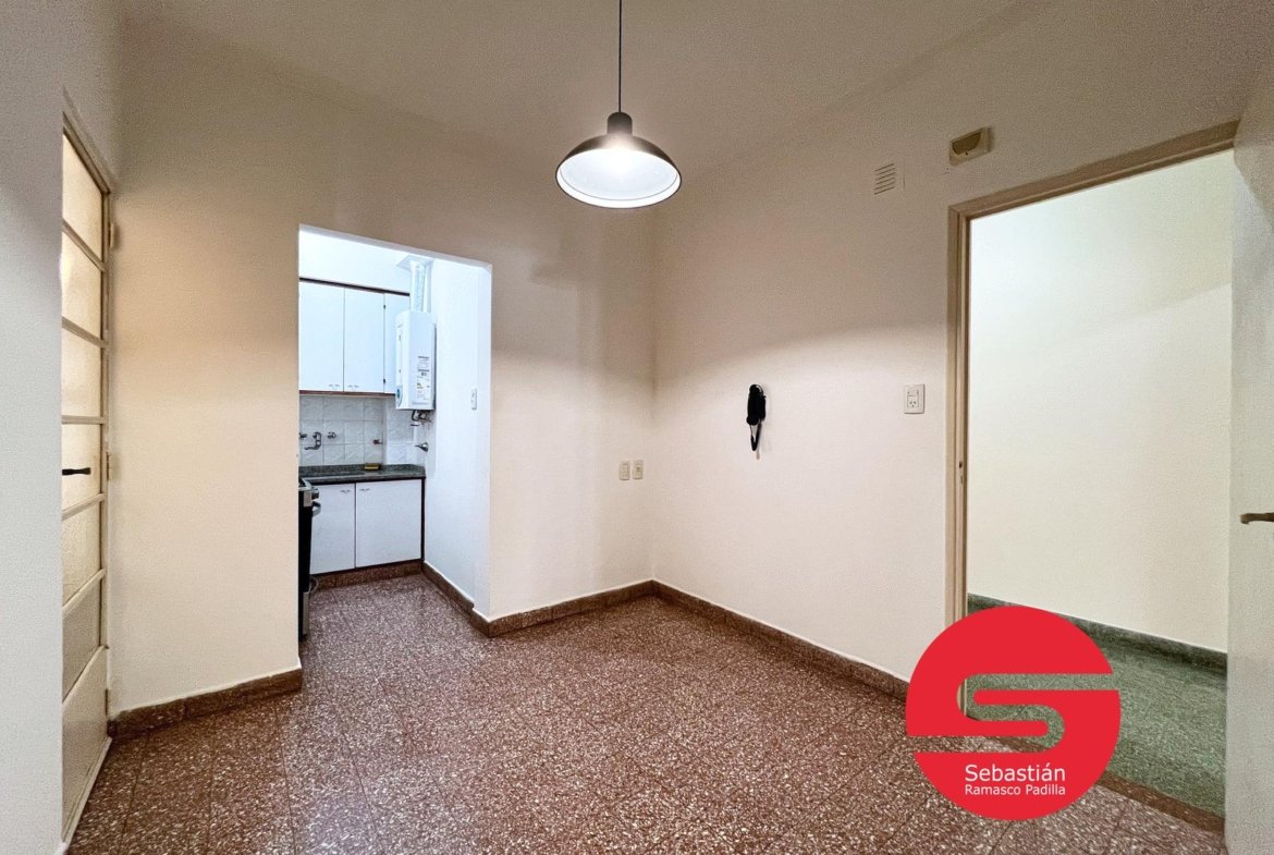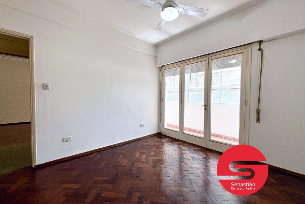 El ingreso es a un recibidor que conduce a un living comedor amplio y muy luminoso, con pisos de parquet y salida a un balcón corrido. La cocina es independiente y cuenta con bajo mesada y alacenas, además de un lavadero separado con cerramiento. Dispone de dos dormitorios con placares empotrados y un baño completo reciclado.