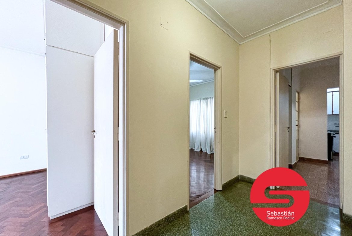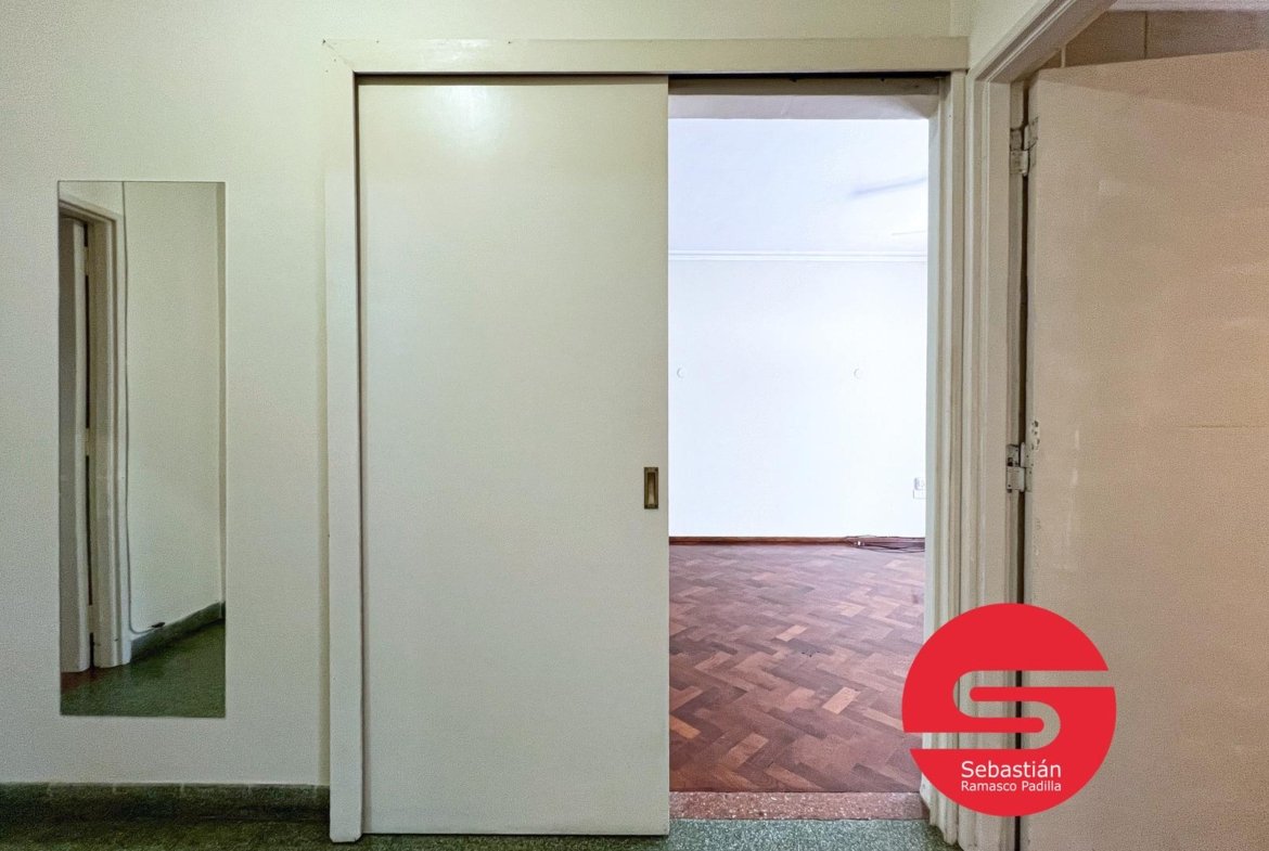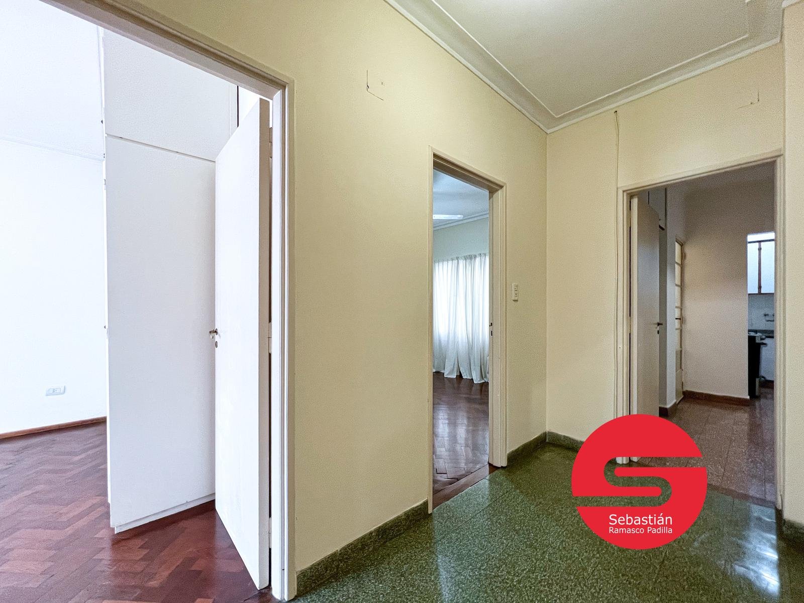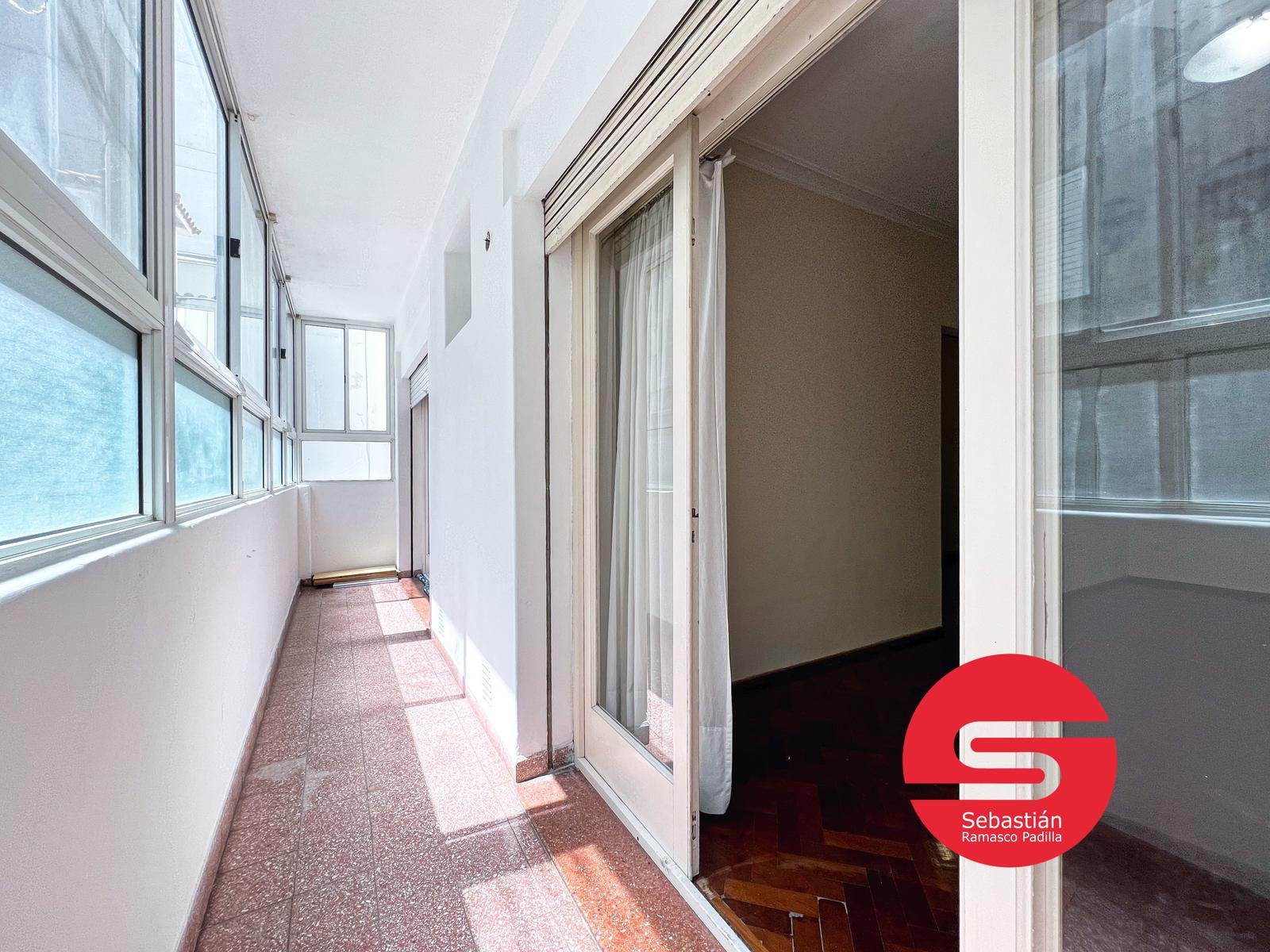 El ingreso es a un recibidor que conduce a un living comedor amplio y muy luminoso, con pisos de parquet y salida a un balcón corrido. La cocina es independiente y cuenta con bajo mesada y alacenas, además de un lavadero separado con cerramiento. Dispone de dos dormitorios con placares empotrados y un baño completo reciclado.
