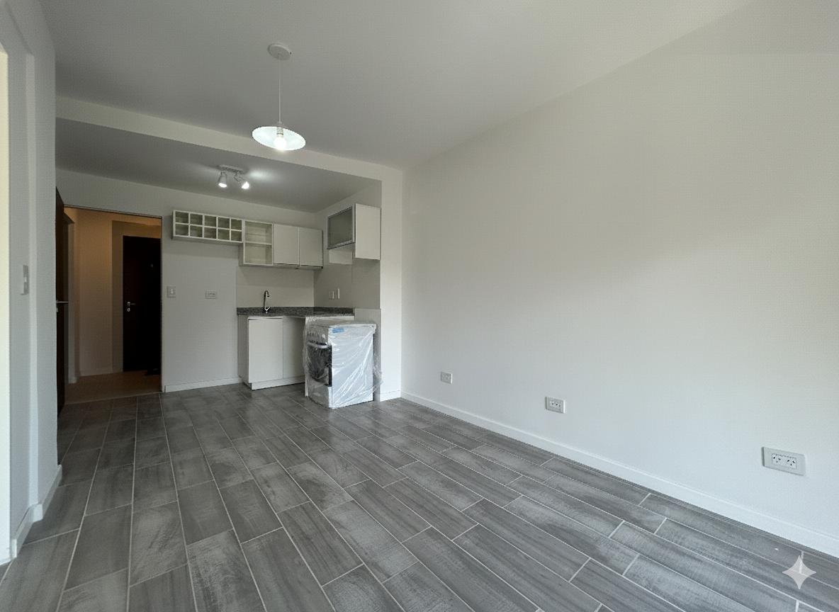 El departamento cuenta con ingreso directo a un amplio living comedor, con un diseño cómodo que permite una correcta distribución del mobiliario. La cocina semi integrada se encuentra completamente equipada, con alacenas y bajomesadas, ofreciendo buen espacio de guardado y una estética moderna, ideal para el uso diario.