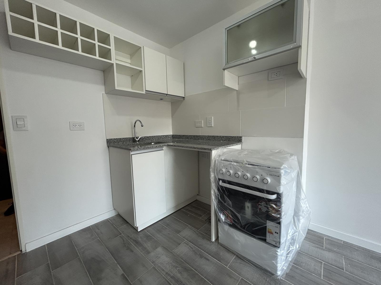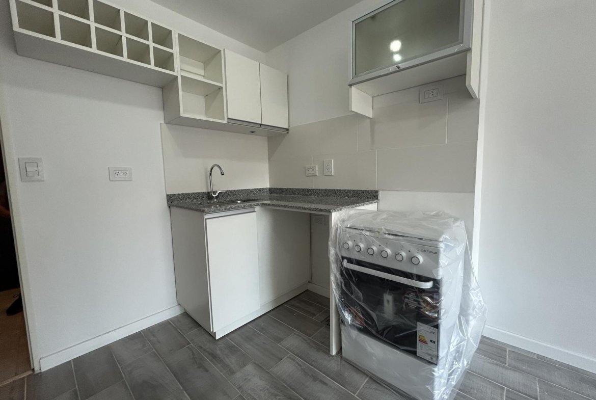 El dormitorio es completo, con placard incorporado y salida al balcón corrido al frente, lo que garantiza luz natural durante todo el día. El baño es completo y cuenta con receptáculo de ducha, con terminaciones actuales y de excelente calidad.