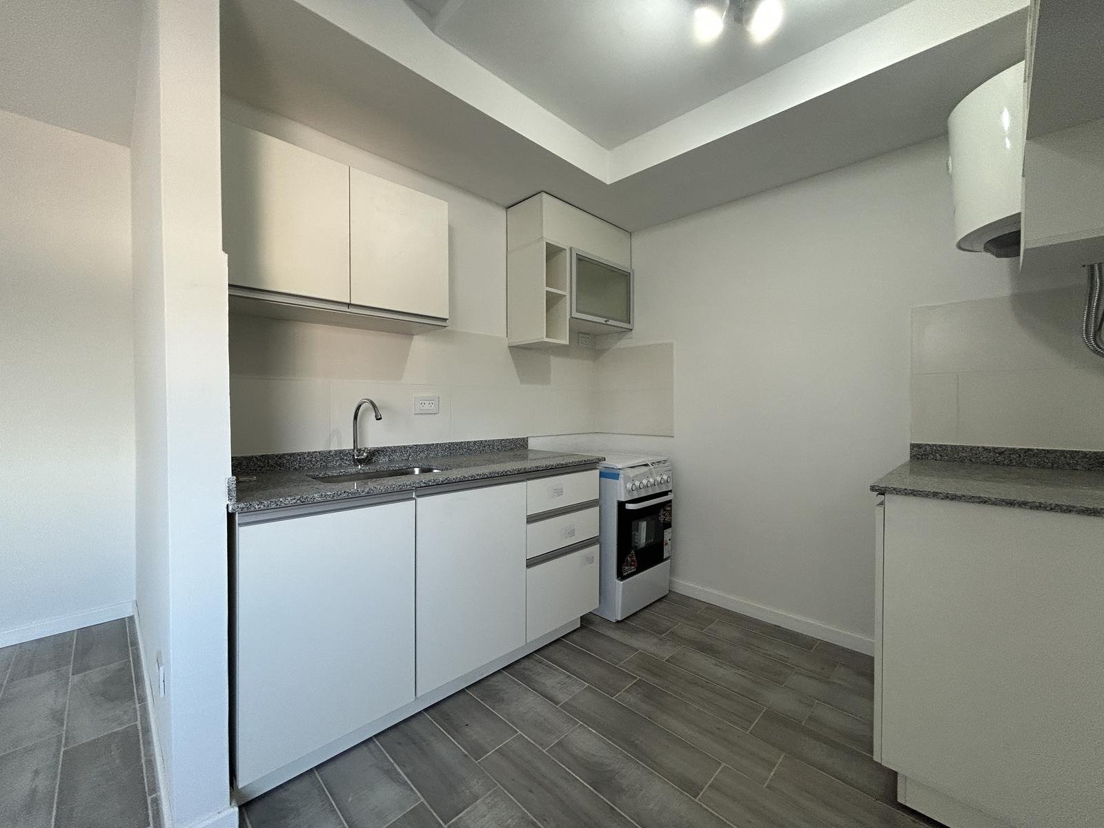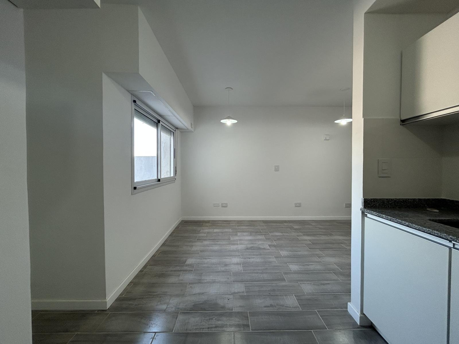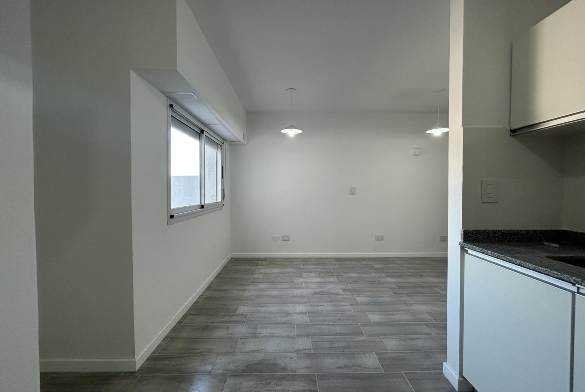 El departamento cuenta con ingreso directo a un amplio living comedor, con un diseño cómodo que permite una correcta distribución del mobiliario. La cocina semi integrada se encuentra completamente equipada, con alacenas y bajomesadas, ofreciendo buen espacio de guardado y una estética moderna, ideal para el uso diario.