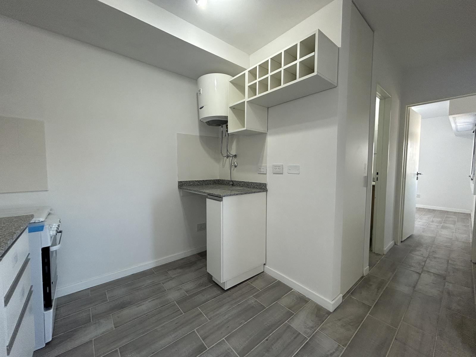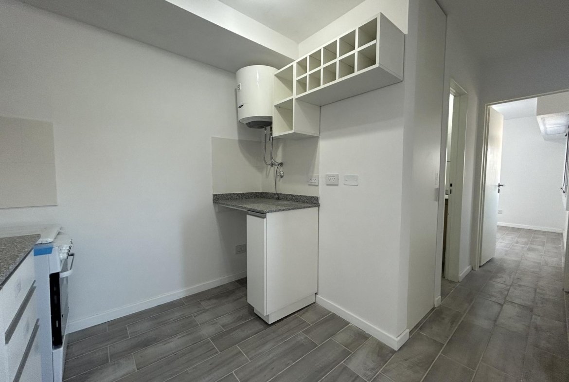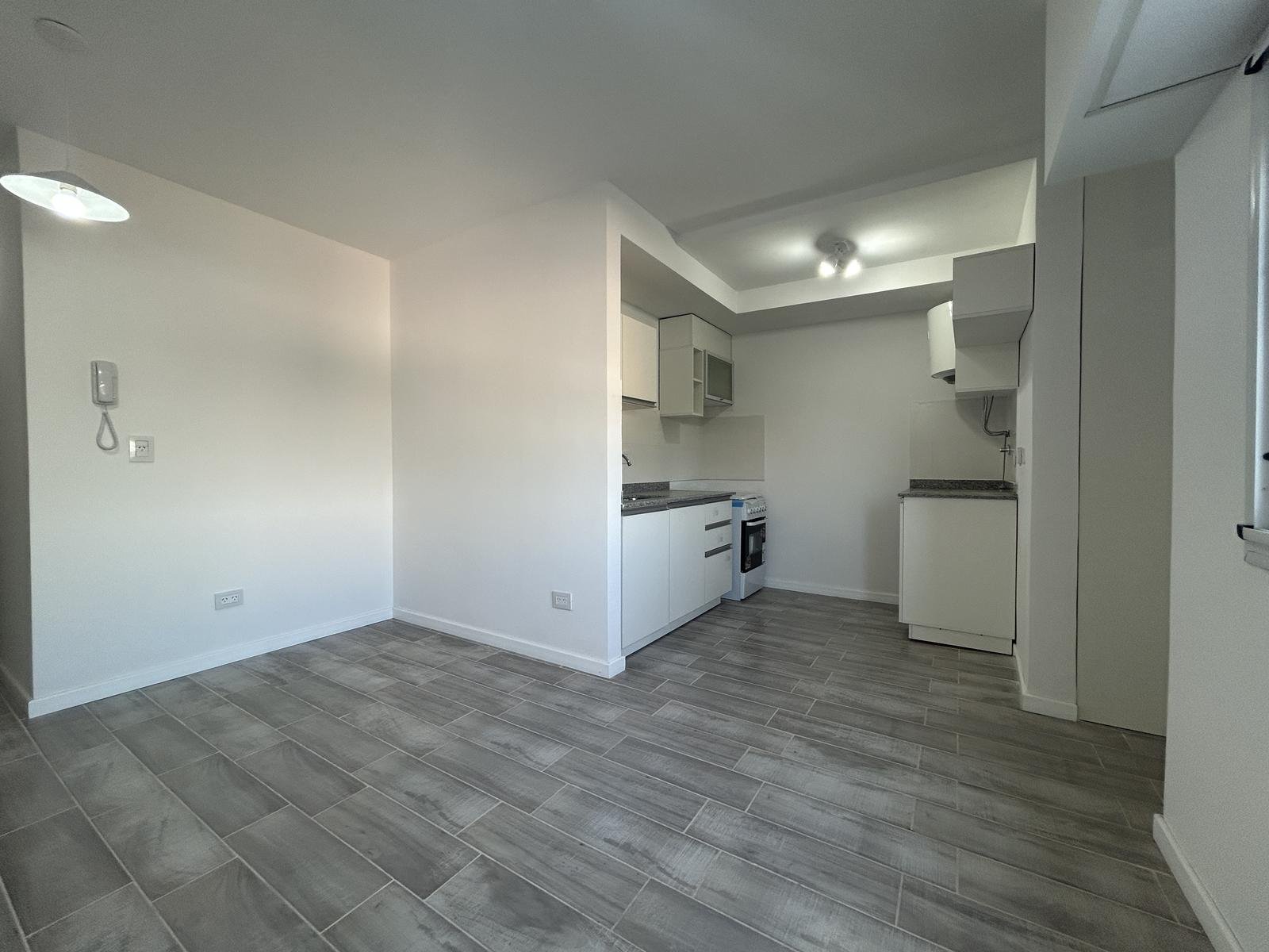 El departamento cuenta con ingreso directo a un amplio living comedor, con un diseño cómodo que permite una correcta distribución del mobiliario. La cocina semi integrada se encuentra completamente equipada, con alacenas y bajomesadas, ofreciendo buen espacio de guardado y una estética moderna, ideal para el uso diario.
