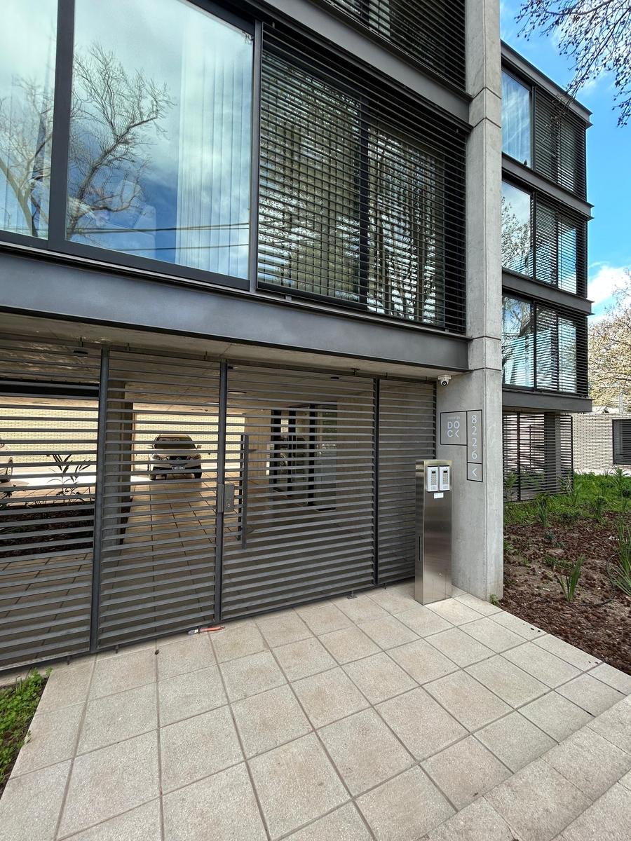 En la planta baja, y a partir de un ingreso general al edificio, se accede a cada uno de los hall de ingreso para cada bloque de departamentos, ubicándose también en esta misma planta las cocheras cubiertas y exclusivas para cada unidad. En su azotea se desarrollará una amplia terraza verde recreativa, la cual se encontrará inmersa en la añosa arboleda que la encierra, y contará con piscina, solarium, espacio con fogonero y áreas de servicios. El original y particular diseño genera el constante ingreso de luz natural a las unidades mediante un vacío o patio central, a la vez que la fachada vidriada permite incorporar el exterior en la vida interior de las unidades. Tanto la calefacción como la refrigeración se resuelven con la preinstalación para sistemas multisplit inverter, sistema que se caracteriza por su alta eficiencia energética y a su vez permite que cada unidad exterior sea ubicada de manera oculta en la azotea del emprendimiento.