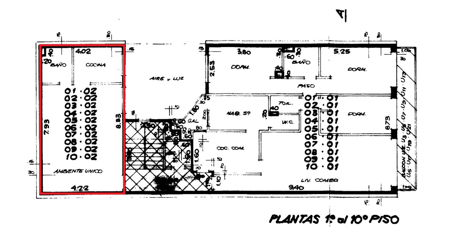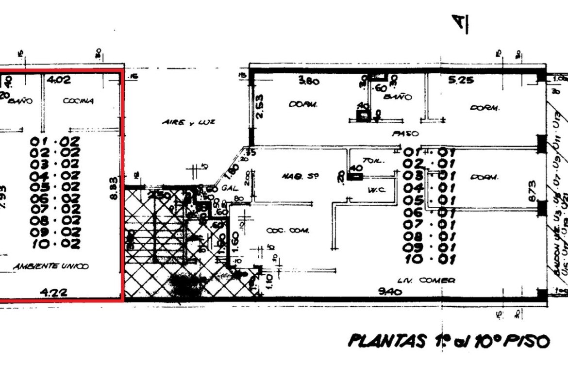 Ingreso directo al ambiente amplio con orientación Norte. Cocina separada, amoblamiento bajo mesada totalmente reciclado, mesada de marmol, espacio técnico para heladera y conexión prevista para lavarropas, ventilación natural. Departamento con buena ventilación y excelente luminosidad ya que se ubica en el noveno piso. Sus pisos son de parquet convinados con porcellanatos en baño y cocina.