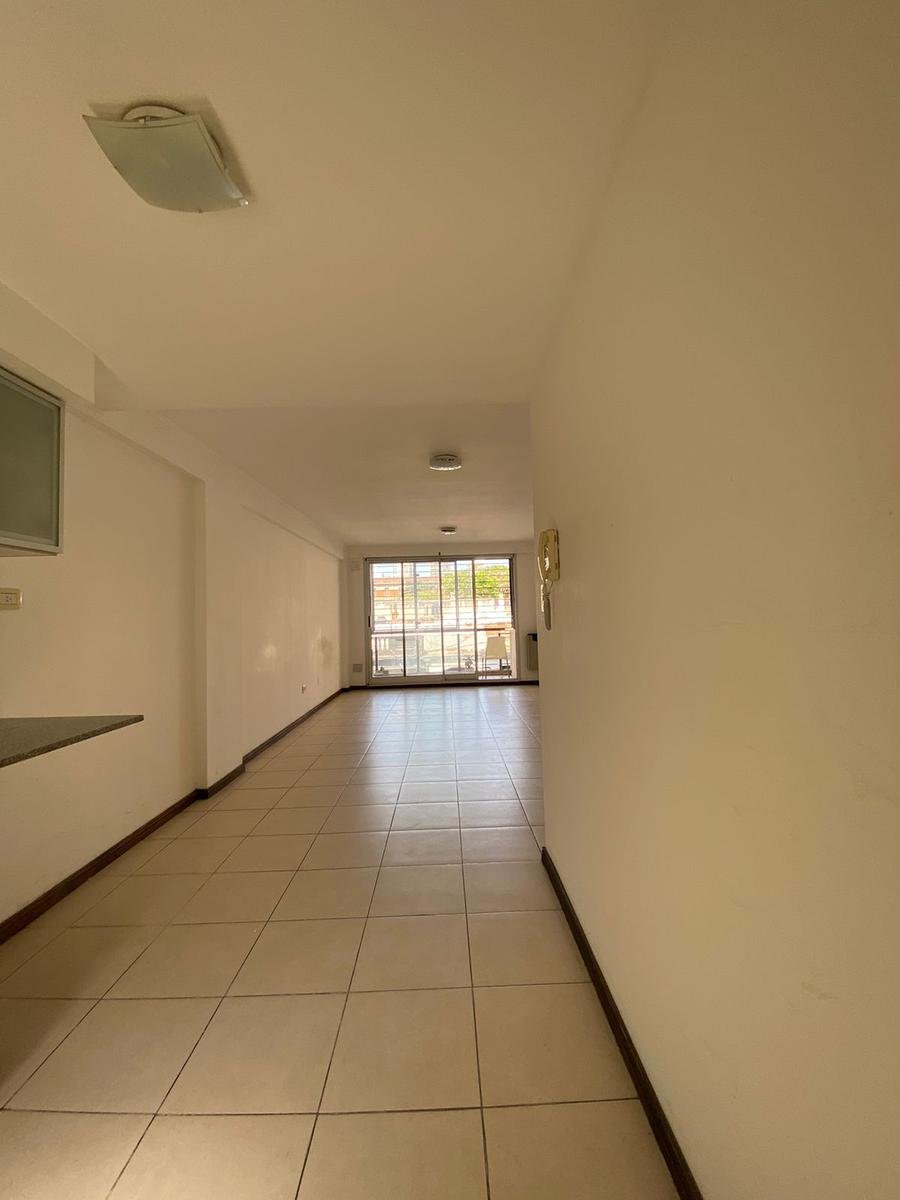La unidad cuenta con ingreso directo mediante puerta de madera hacia una cocina pasante, práctica y funcional, con buena capacidad de guardado y cómoda circulación. Este sector se integra de manera armónica con el ambiente principal, generando un espacio amplio, versátil y muy luminoso. Gracias a su disposición y a la ventilación cruzada, el departamento mantiene una agradable circulación de aire natural durante todo el día, aportando confort y frescura.