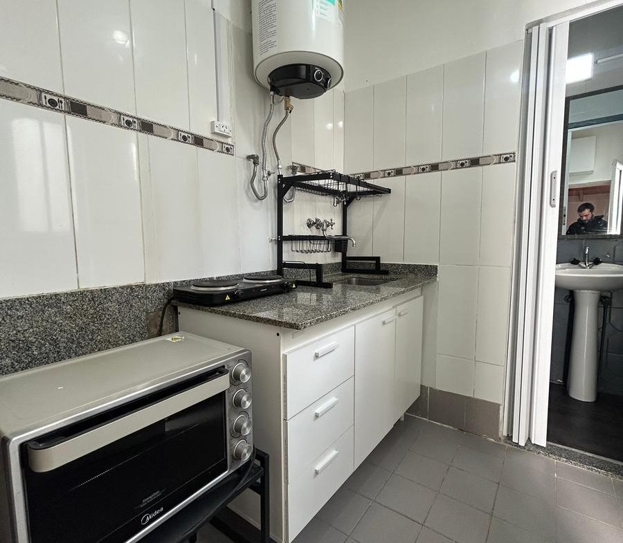 Departamento de pasillo de un dormitorio con patio, ubicado en una excelente zona de la ciudad, a pocas cuadras del Río y rodeado de parques y espacios verdes. Al ingresar, se accede directamente al patio, con techo rebatible y orientación Norte, lo que garantiza una muy buena entrada de luz natural durante todo el día.