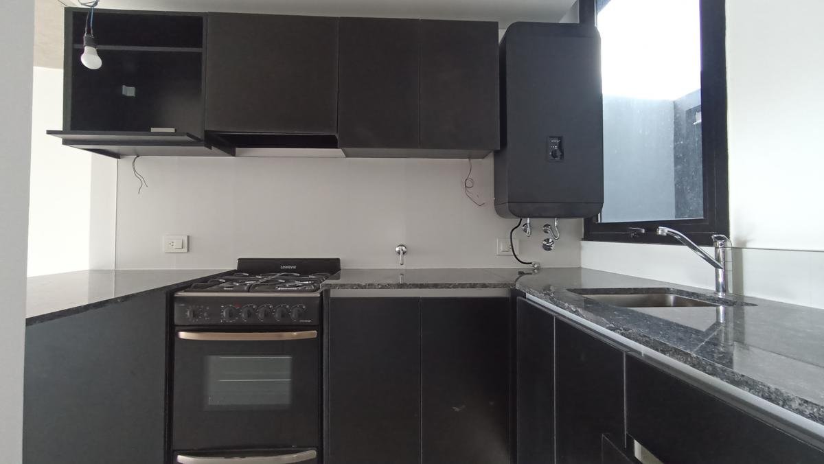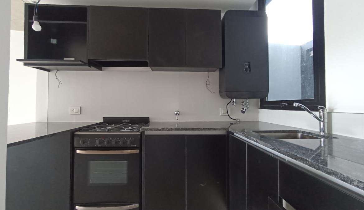 Dispone de cocina integrada con diseño moderno, equipada con barra desayunadora, mobiliario de primera calidad, bajo mesada y alacenas con excelente capacidad de guardado.