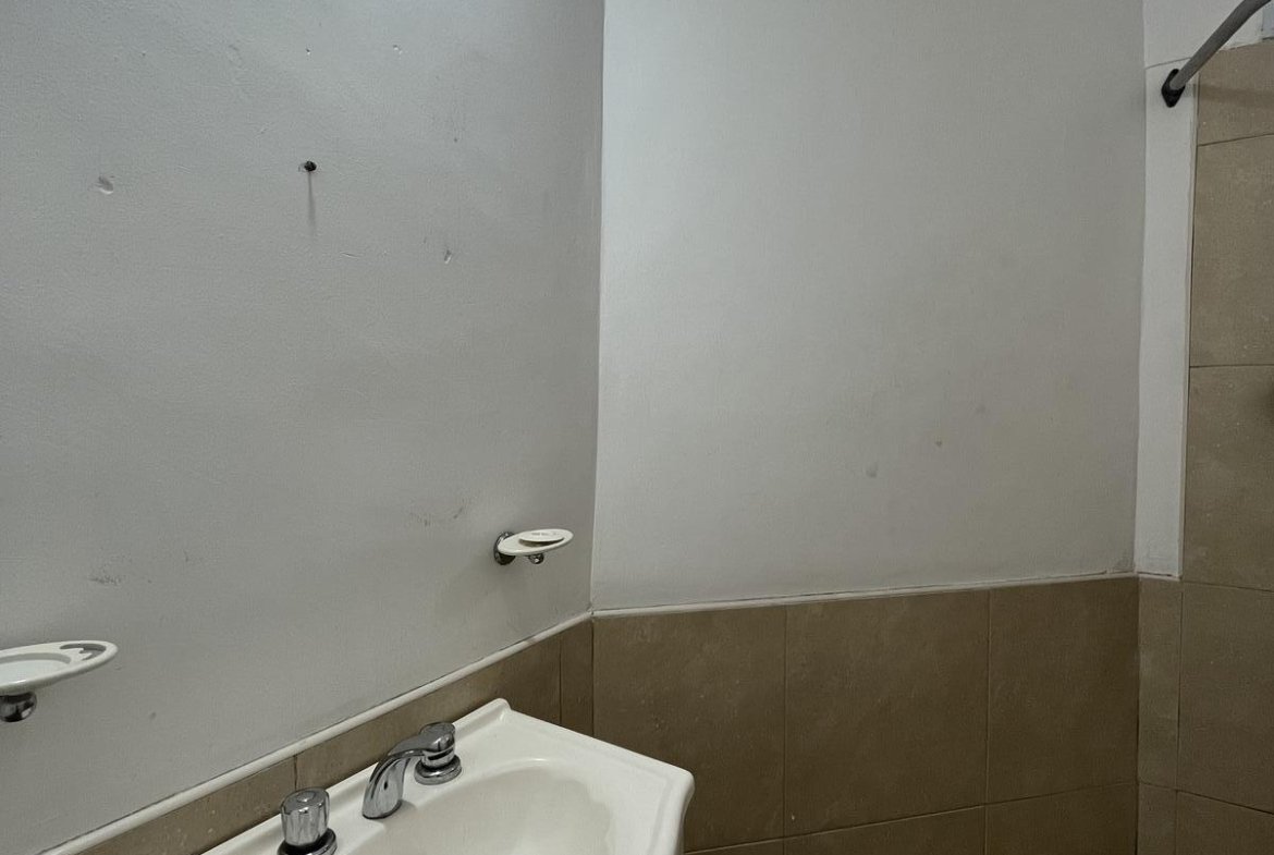 El baño es completo y dispone de receptáculo de ducha, en buen estado y de uso práctico.