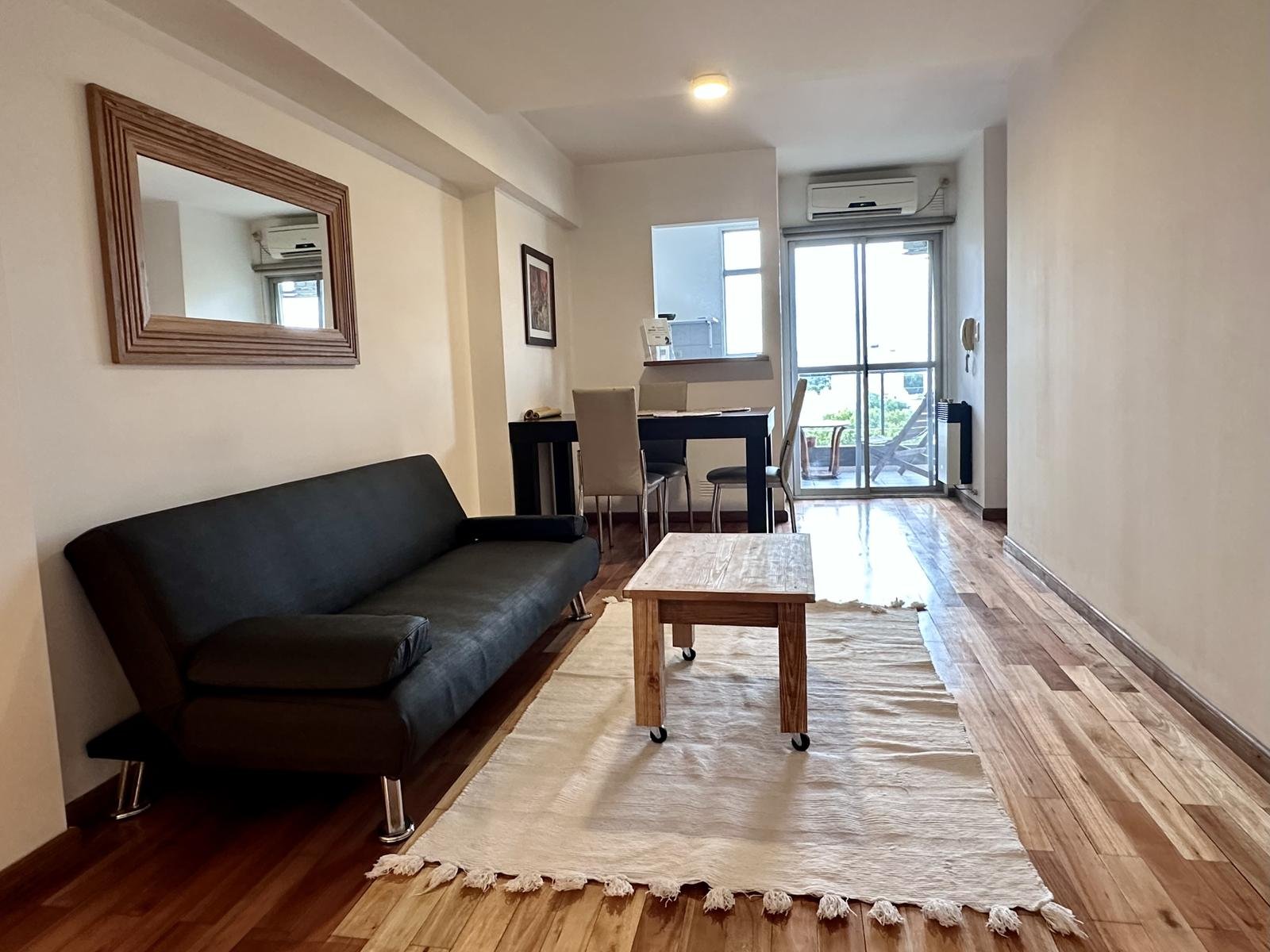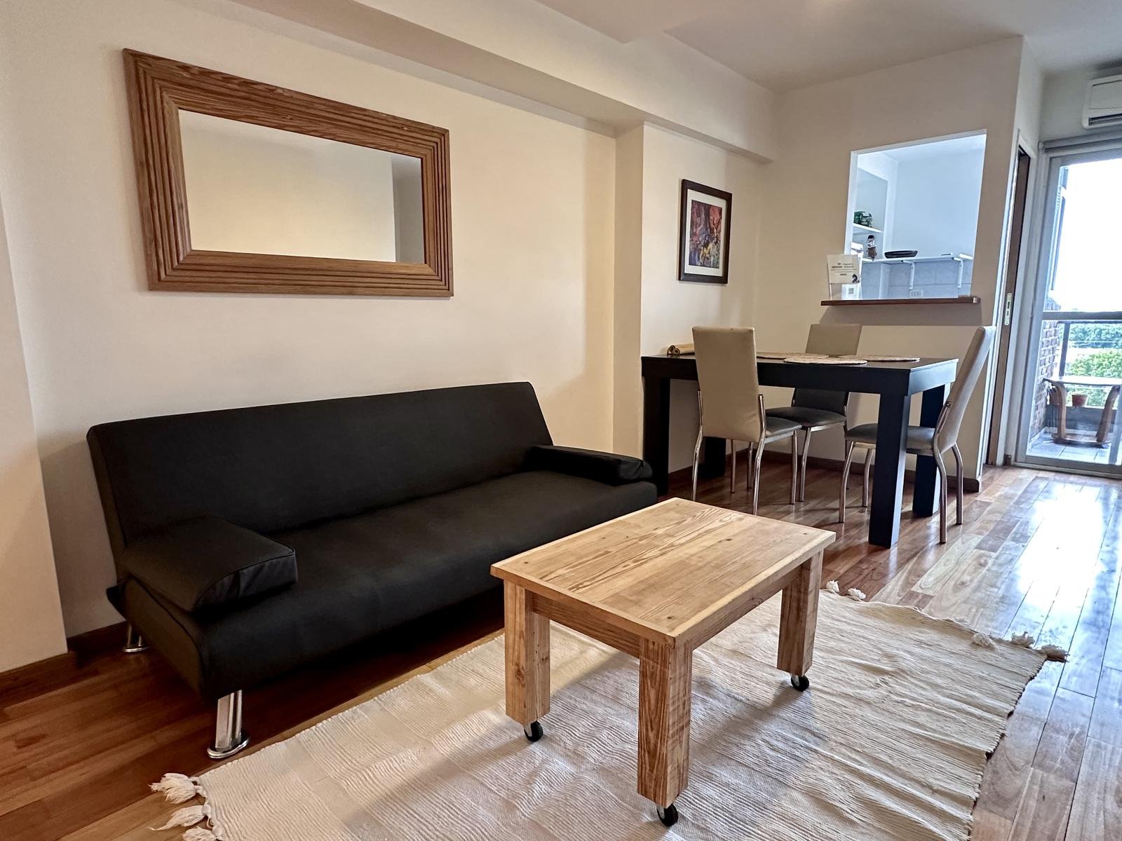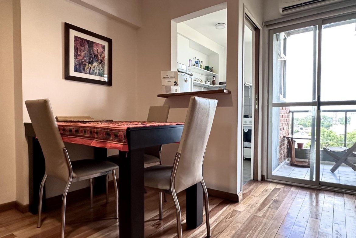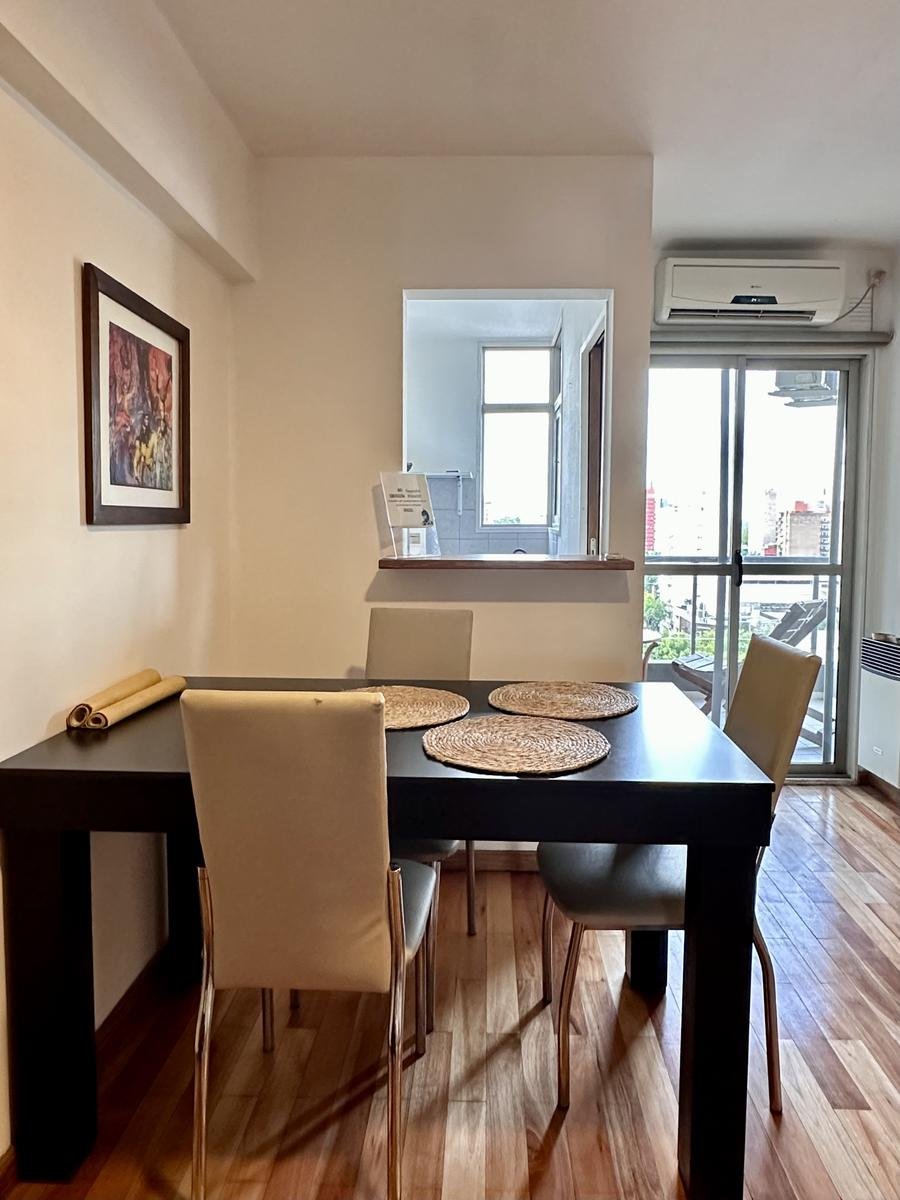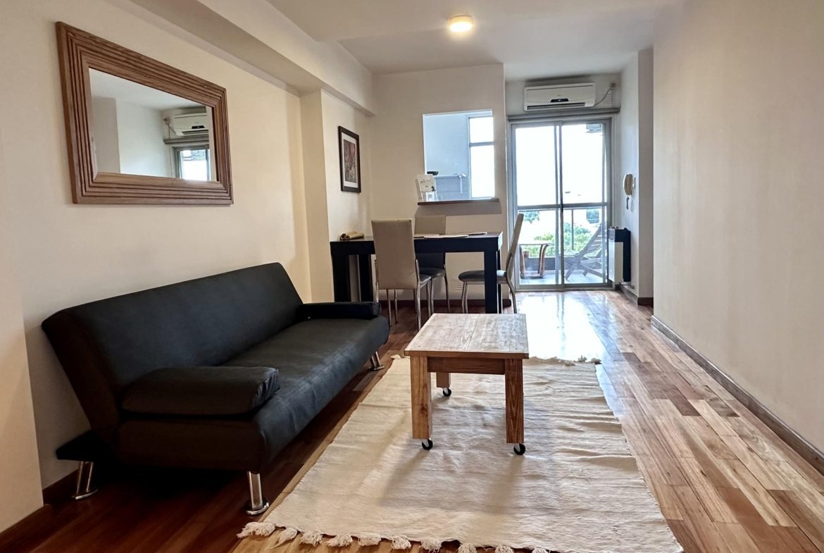 Moderno departamento de 1 dormitorio, totalmente amoblado y equipado. Muy luminoso y con excelente ventilación cruzada Norte–Sur.