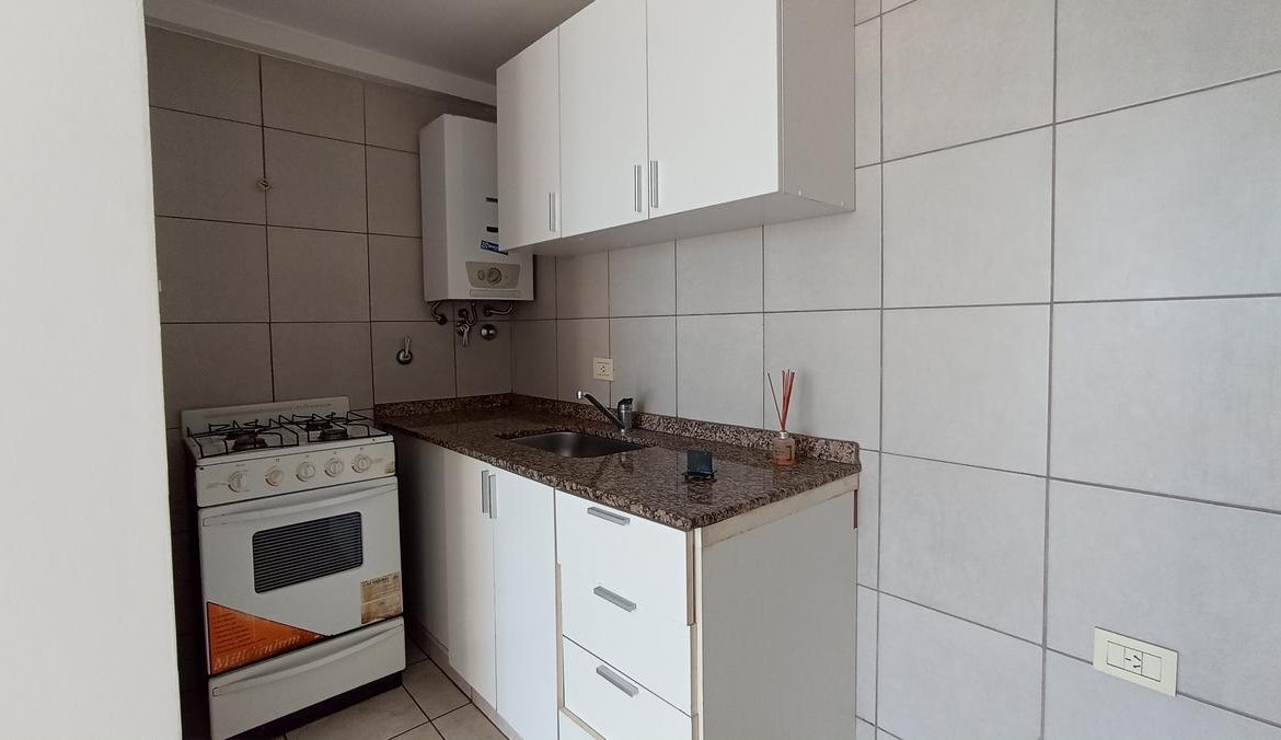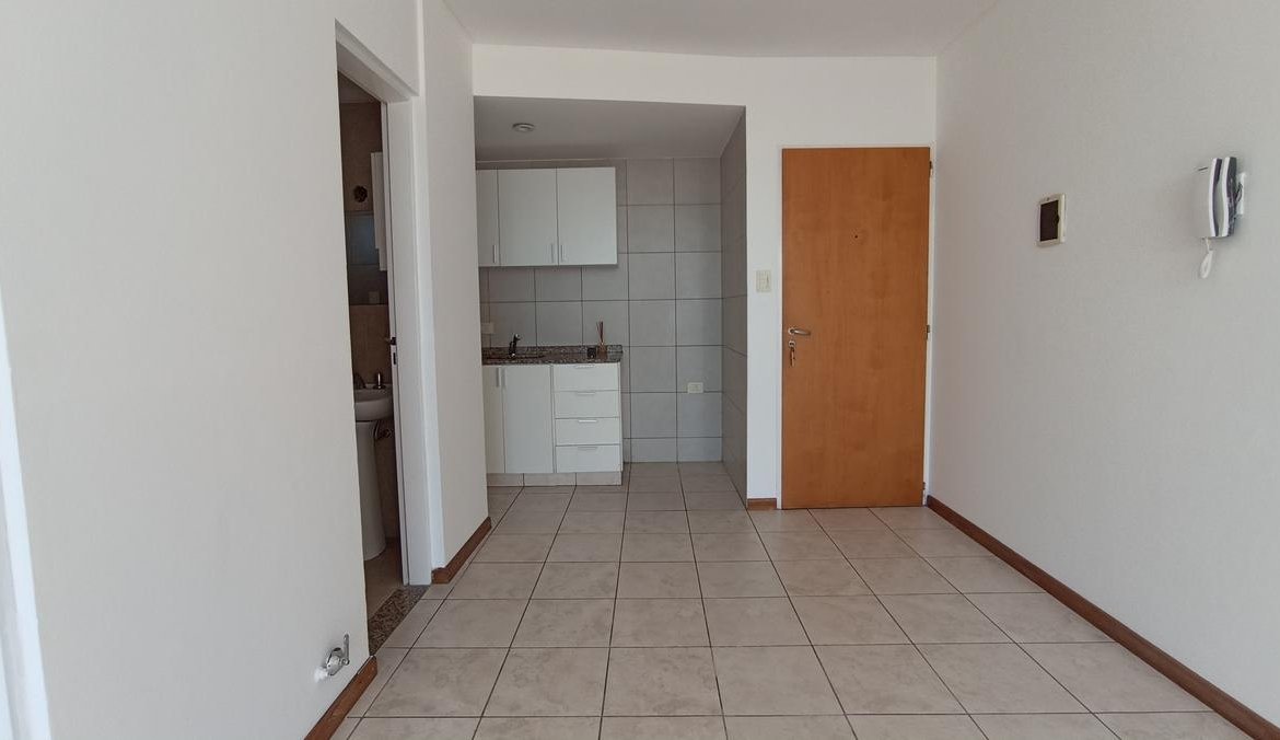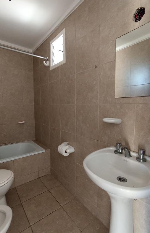 El dormitorio, cómodo y bien distribuido, dispone de un placard amplio que brinda excelente espacio de guardado y además tiene salida directa al balcón, lo que aporta ventilación cruzada y una sensación de amplitud muy agradable. El baño completo, equipado con bañera y ventilación natural, combina diseño y funcionalidad, asegurando confort en cada detalle.