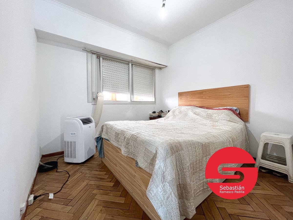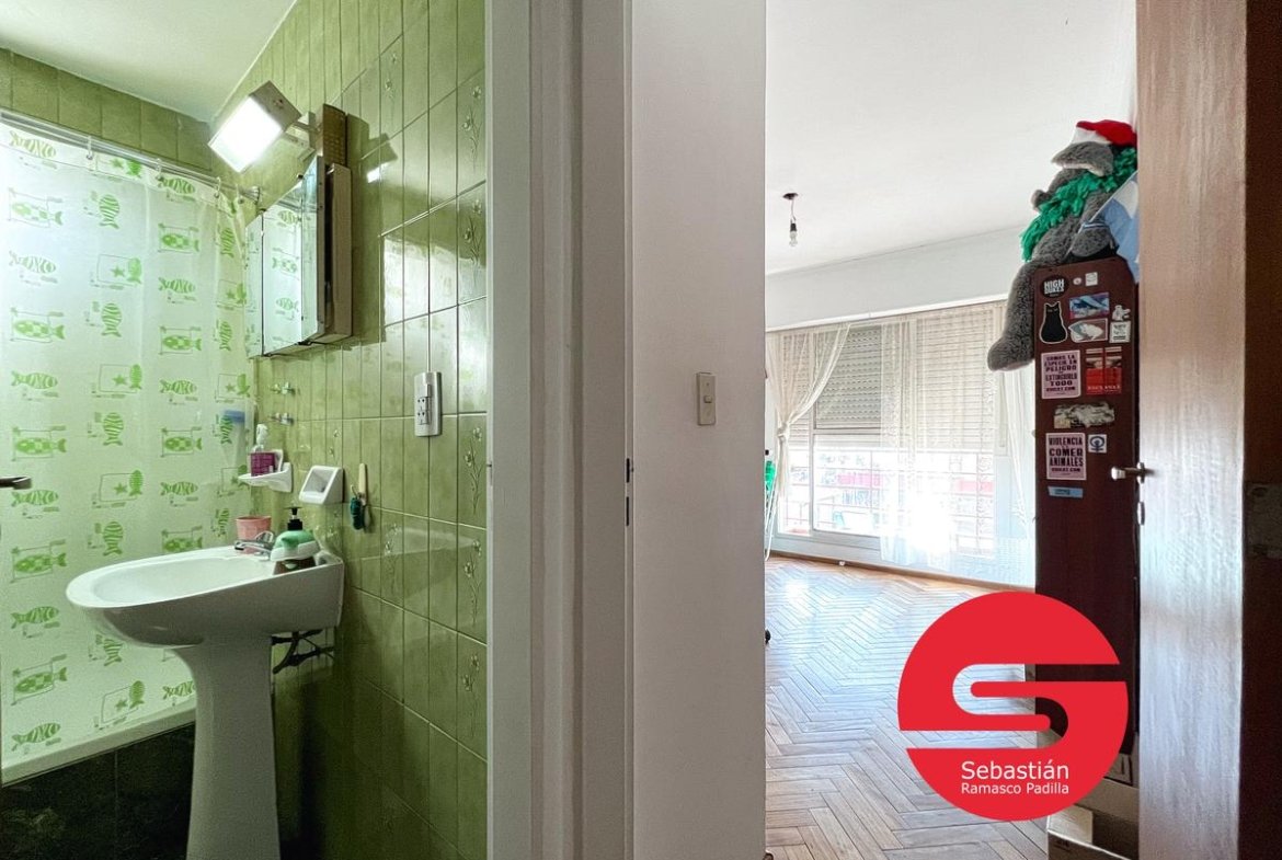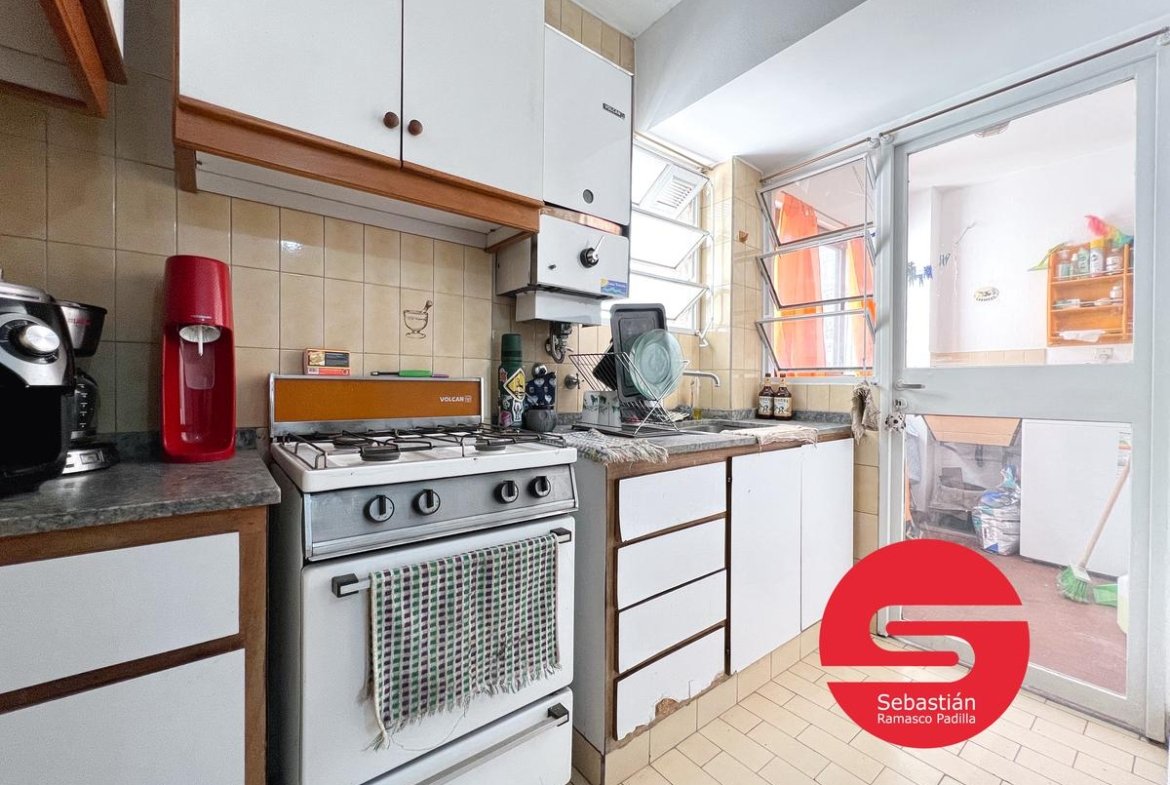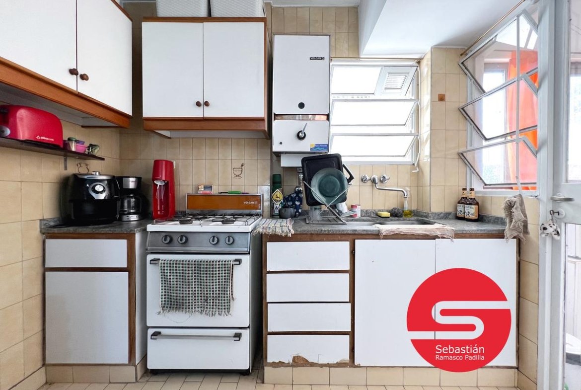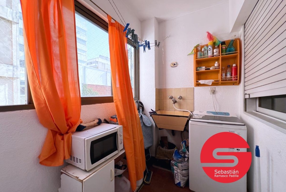Cocina separada con ventilación natural y salida al lavadero, mesada de granito, bacha doble de acero inoxidable, alacena y bajo mesada de melamina, espacio técnico para cocina y heladera. Lavadero separado con bacha y espacio técnico para lavarropas. Baño completo con bañera, loza sanitaria y grifería en óptimo estado. Dos dormitorios, uno al frente con placard completo y salida al balcón. El segundo dormitorio contrafrente también con placar completo empotrado.