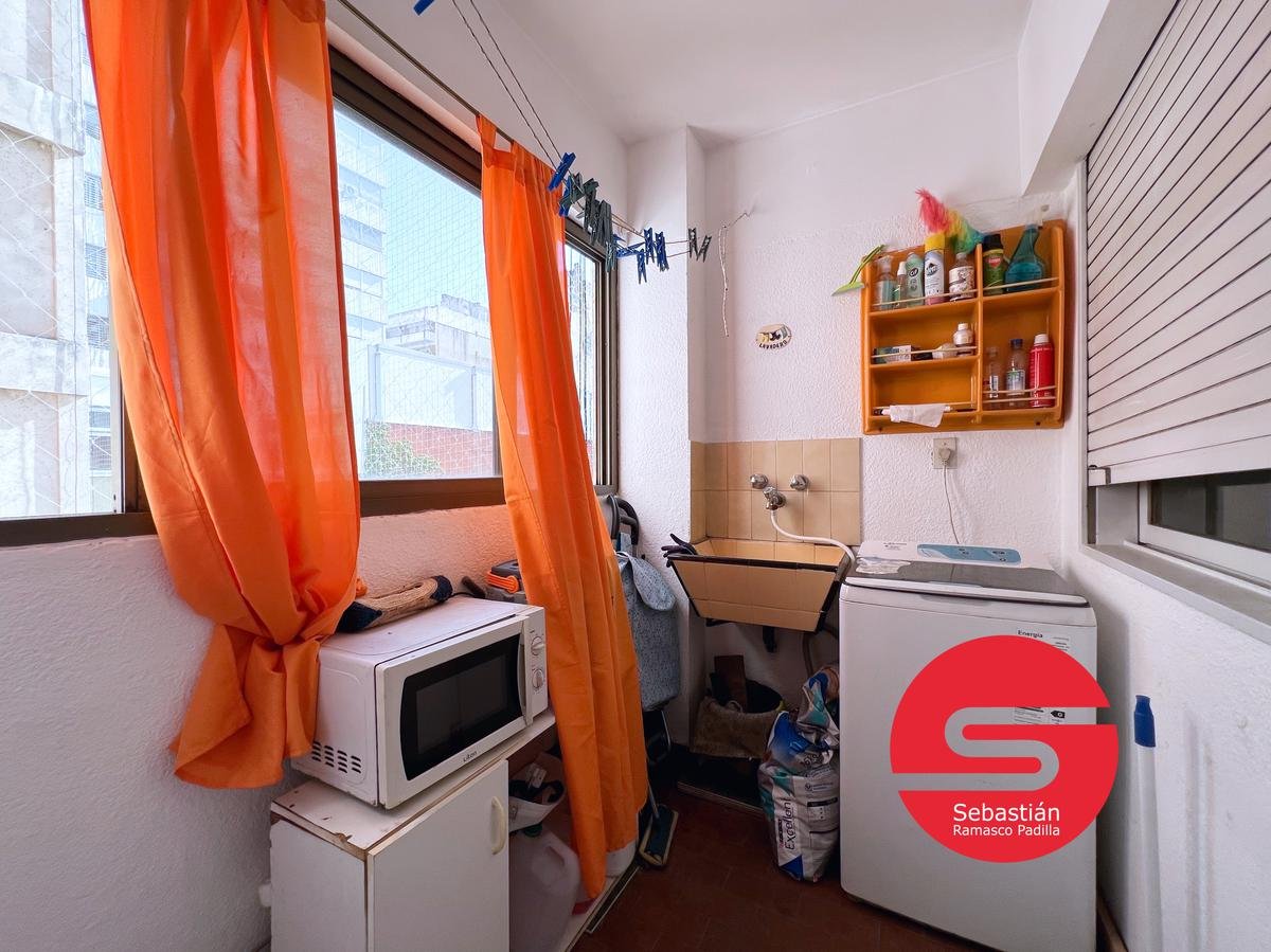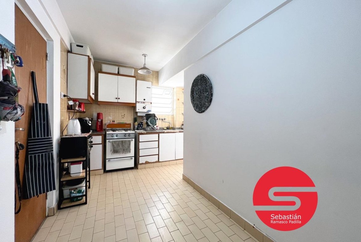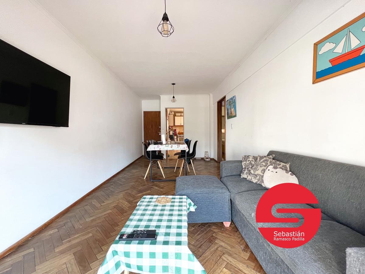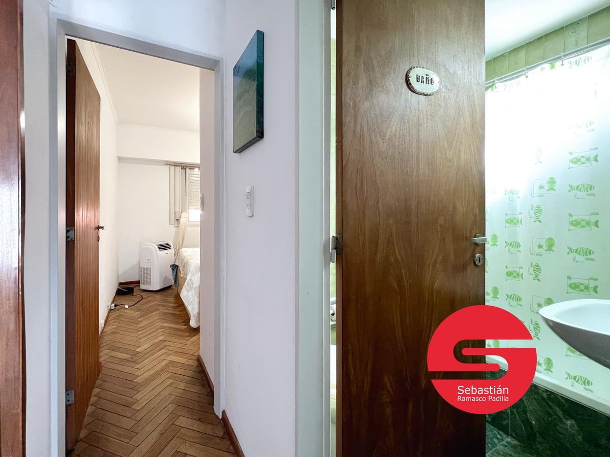 Cocina separada con ventilación natural y salida al lavadero, mesada de granito, bacha doble de acero inoxidable, alacena y bajo mesada de melamina, espacio técnico para cocina y heladera. Lavadero separado con bacha y espacio técnico para lavarropas. Baño completo con bañera, loza sanitaria y grifería en óptimo estado. Dos dormitorios, uno al frente con placard completo y salida al balcón. El segundo dormitorio contrafrente también con placar completo empotrado.