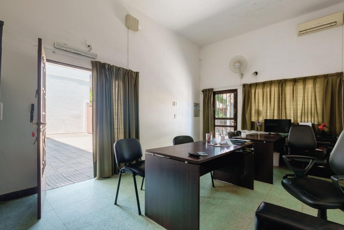 El inmueble cuenta con ascensor, lo que facilita el acceso y la circulación entre plantas, y dispone de una cómoda y eficiente distribución con nueve ambientes, que permiten organizar áreas operativas, administrativas y de atención. Además, posee tres baños, tres cocinas y dos patios ubicados en la planta alta, aportando ventilación natural y espacios de uso complementario.