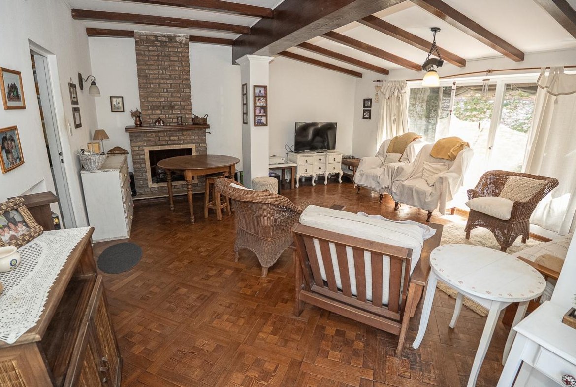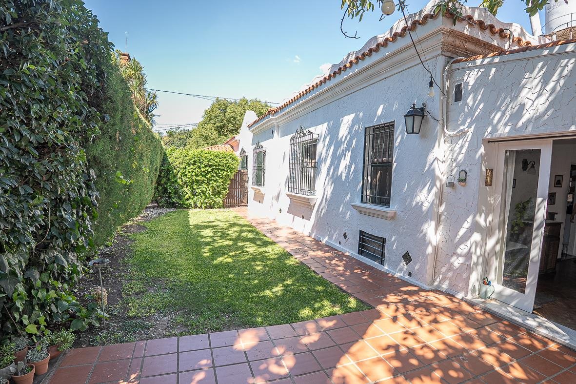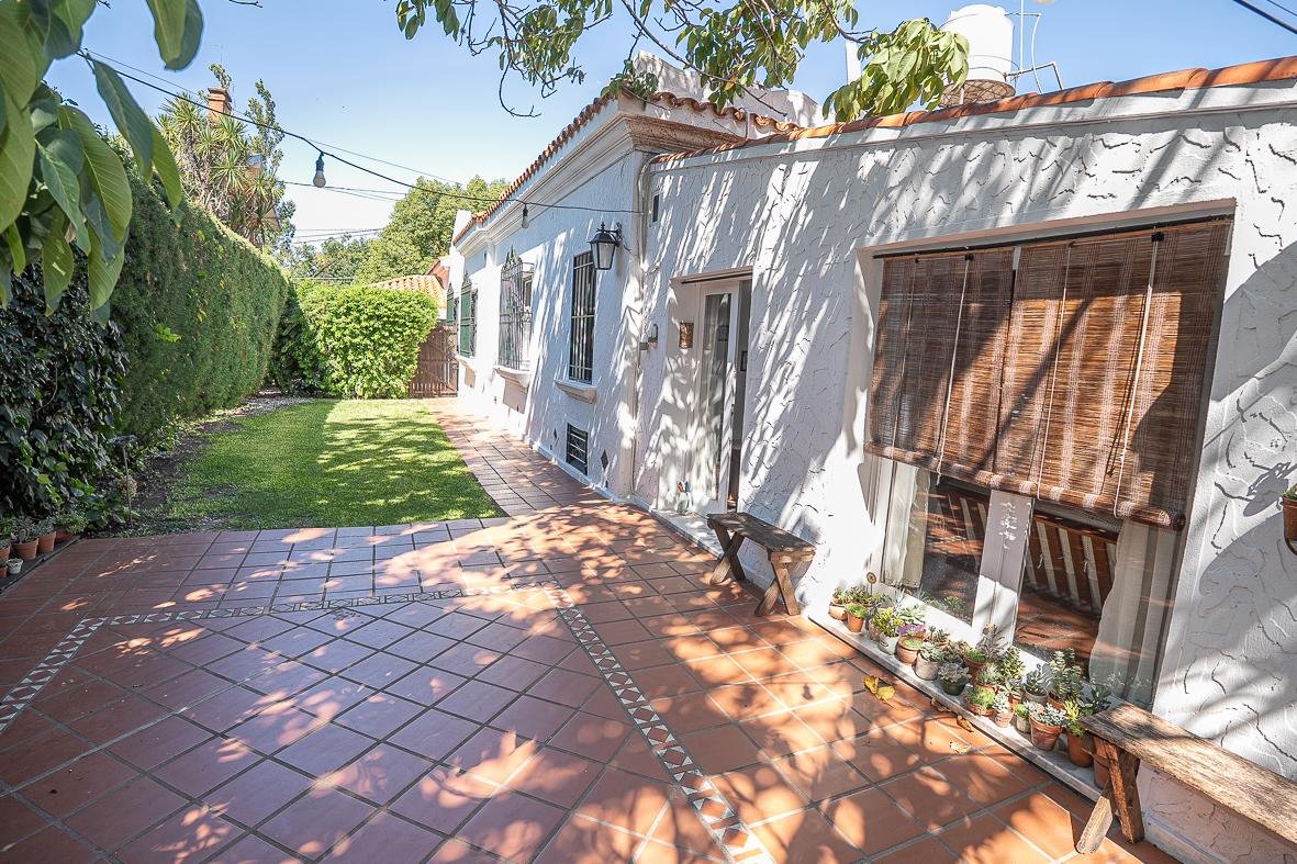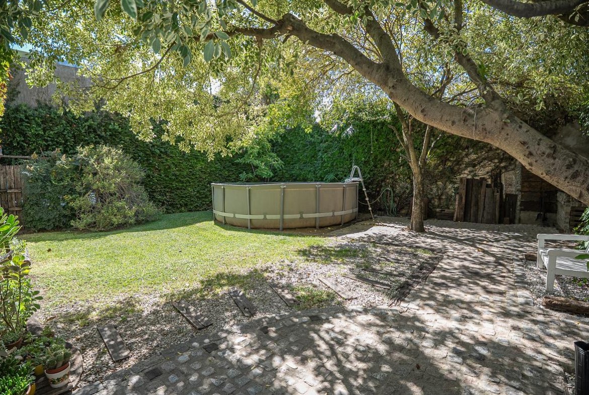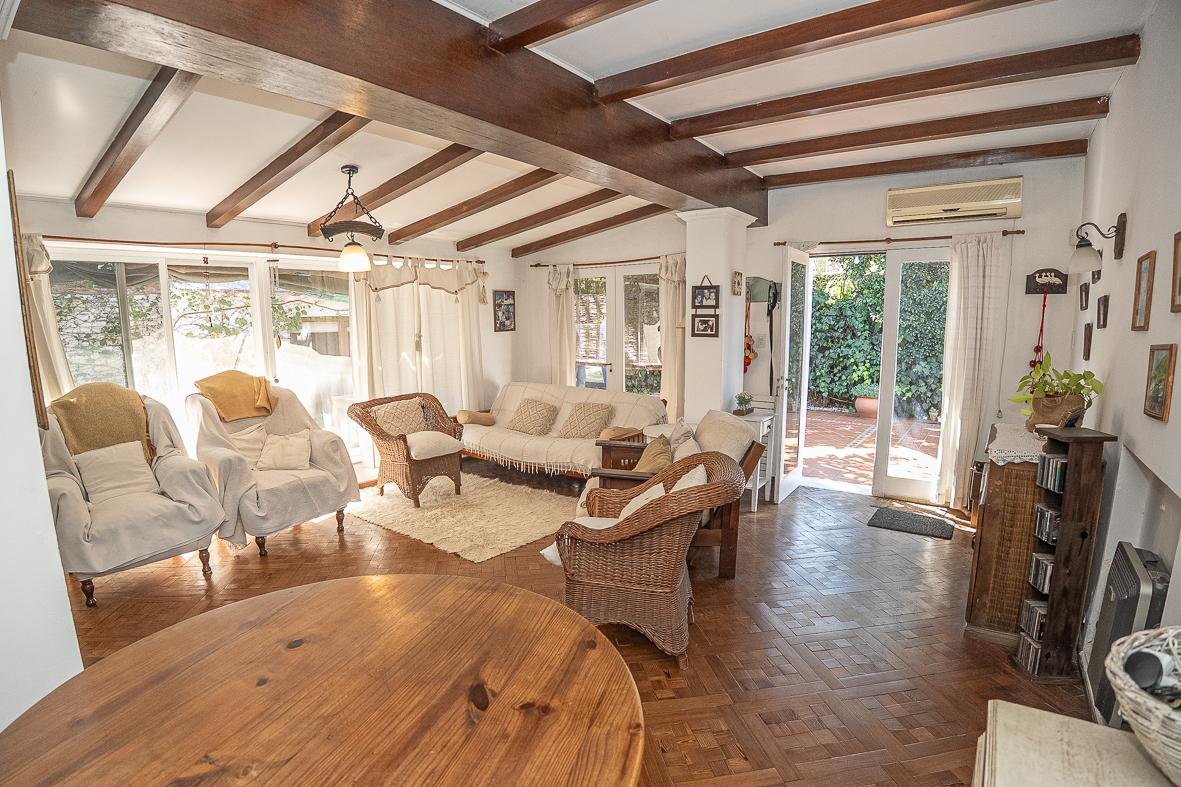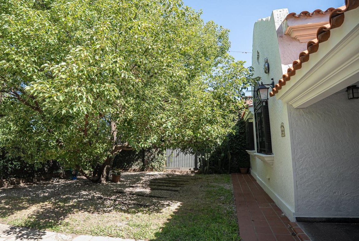 El ingreso se realiza a través de un jardín frontal, que aporta retiro y privacidad, dando paso al living principal y al comedor formal, ambos con cómodas dimensiones y buena iluminación natural. La propiedad cuenta con tres dormitorios bien distribuidos y un escritorio independiente, ideal para home office, estudio o espacio multifuncional. Dispone de cocina comedor funcional, con correcta circulación y conexión hacia un estar comedor adicional, generando distintos espacios para la vida diaria y reuniones sociales. Desde el sector lateral se accede a un patio con lavadero independiente, aportando practicidad al área de servicio. La vivienda incluye además un sótano, ideal para cava de vinos, guardado o espacio de apoyo. Desde el interior se accede al amplio jardín trasero, arbolado y con excelente privacidad, donde se encuentra un cuarto de guardado o quincho, espacio versátil para encuentros y usos recreativos. El jardín cuenta con parrillero, conformando un entorno ideal para disfrutar al aire libre. La propiedad posee calefacción central por caldera, brindando confort térmico en todos los ambientes.