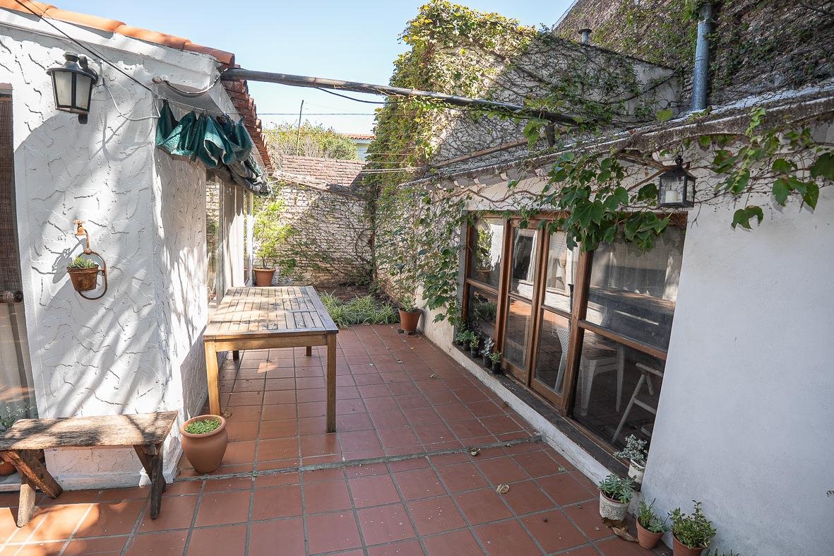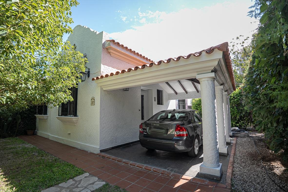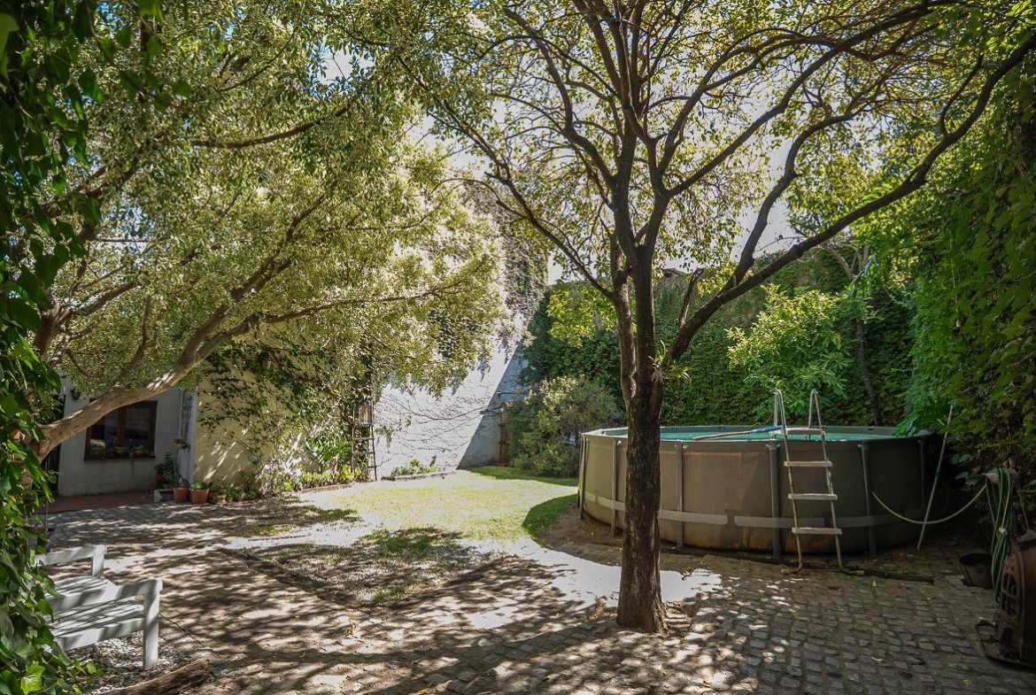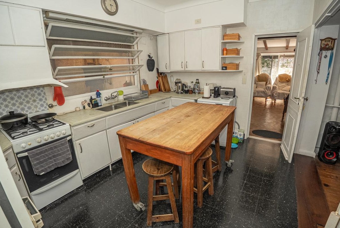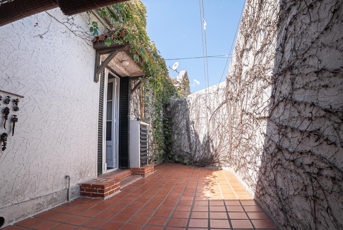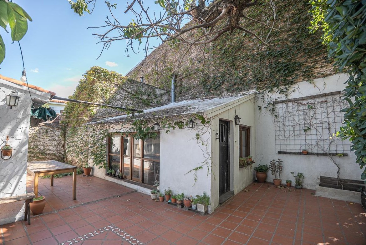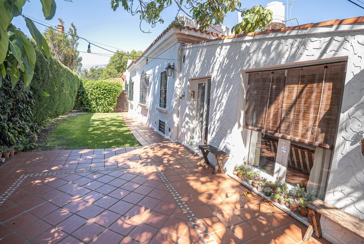 El ingreso se realiza a través de un jardín frontal, que aporta retiro y privacidad, dando paso al living principal y al comedor formal, ambos con cómodas dimensiones y buena iluminación natural. La propiedad cuenta con tres dormitorios bien distribuidos y un escritorio independiente, ideal para home office, estudio o espacio multifuncional. Dispone de cocina comedor funcional, con correcta circulación y conexión hacia un estar comedor adicional, generando distintos espacios para la vida diaria y reuniones sociales. Desde el sector lateral se accede a un patio con lavadero independiente, aportando practicidad al área de servicio. La vivienda incluye además un sótano, ideal para cava de vinos, guardado o espacio de apoyo. Desde el interior se accede al amplio jardín trasero, arbolado y con excelente privacidad, donde se encuentra un cuarto de guardado o quincho, espacio versátil para encuentros y usos recreativos. El jardín cuenta con parrillero, conformando un entorno ideal para disfrutar al aire libre. La propiedad posee calefacción central por caldera, brindando confort térmico en todos los ambientes.