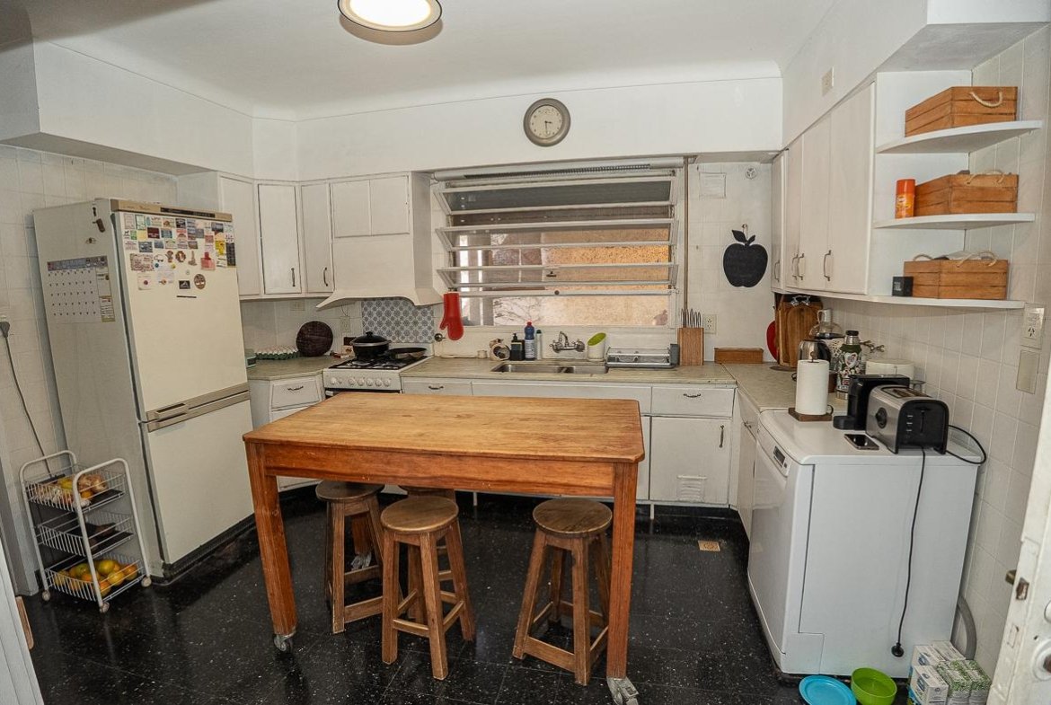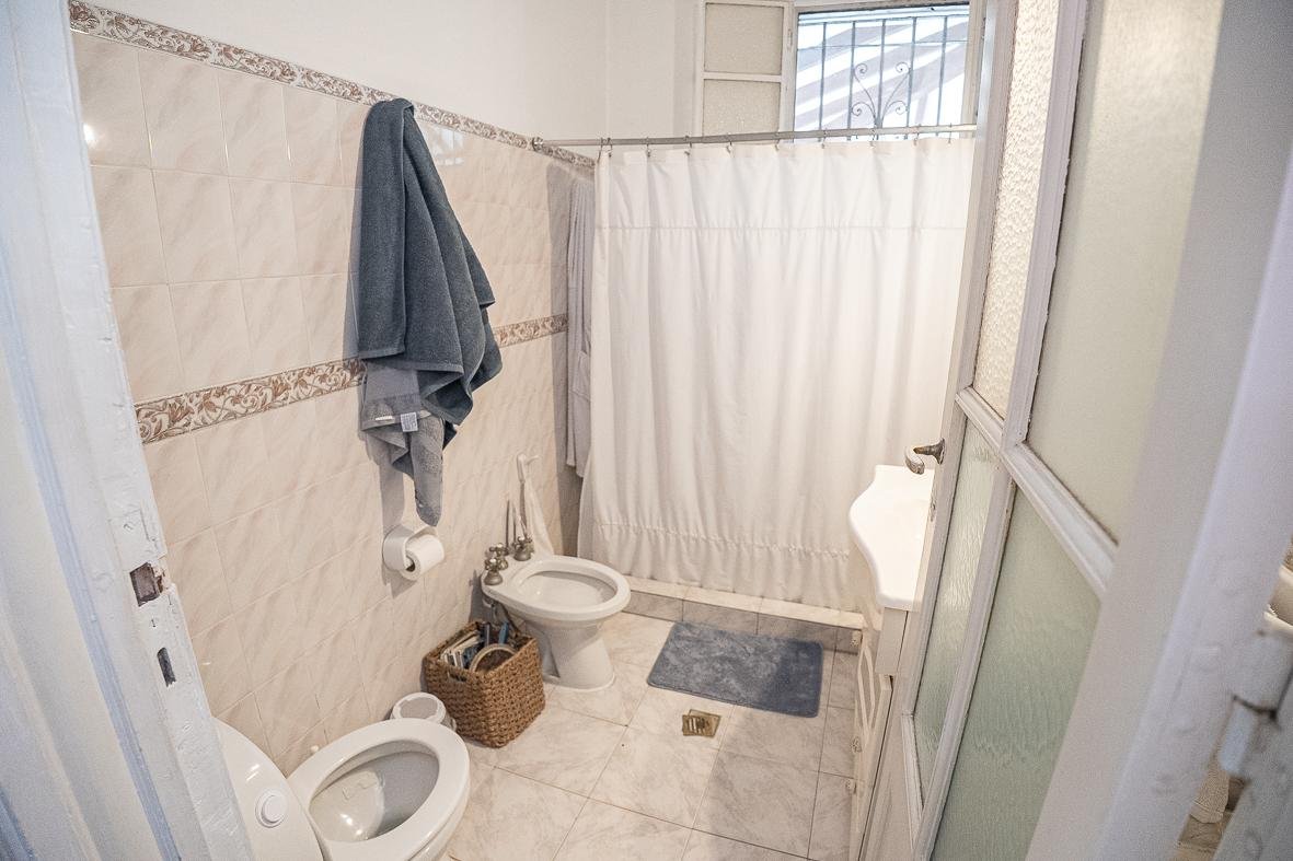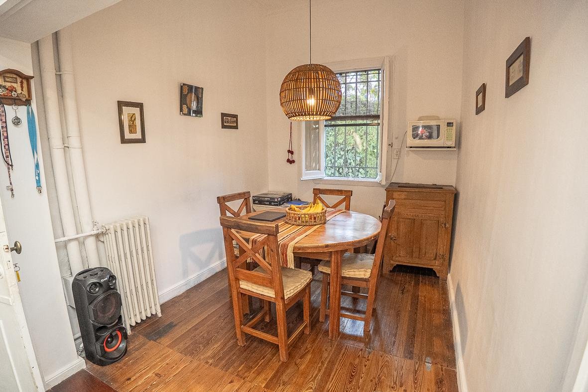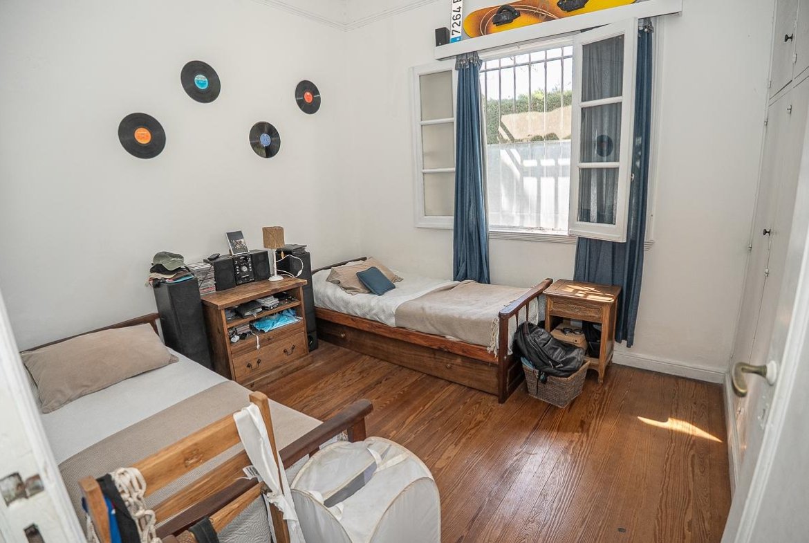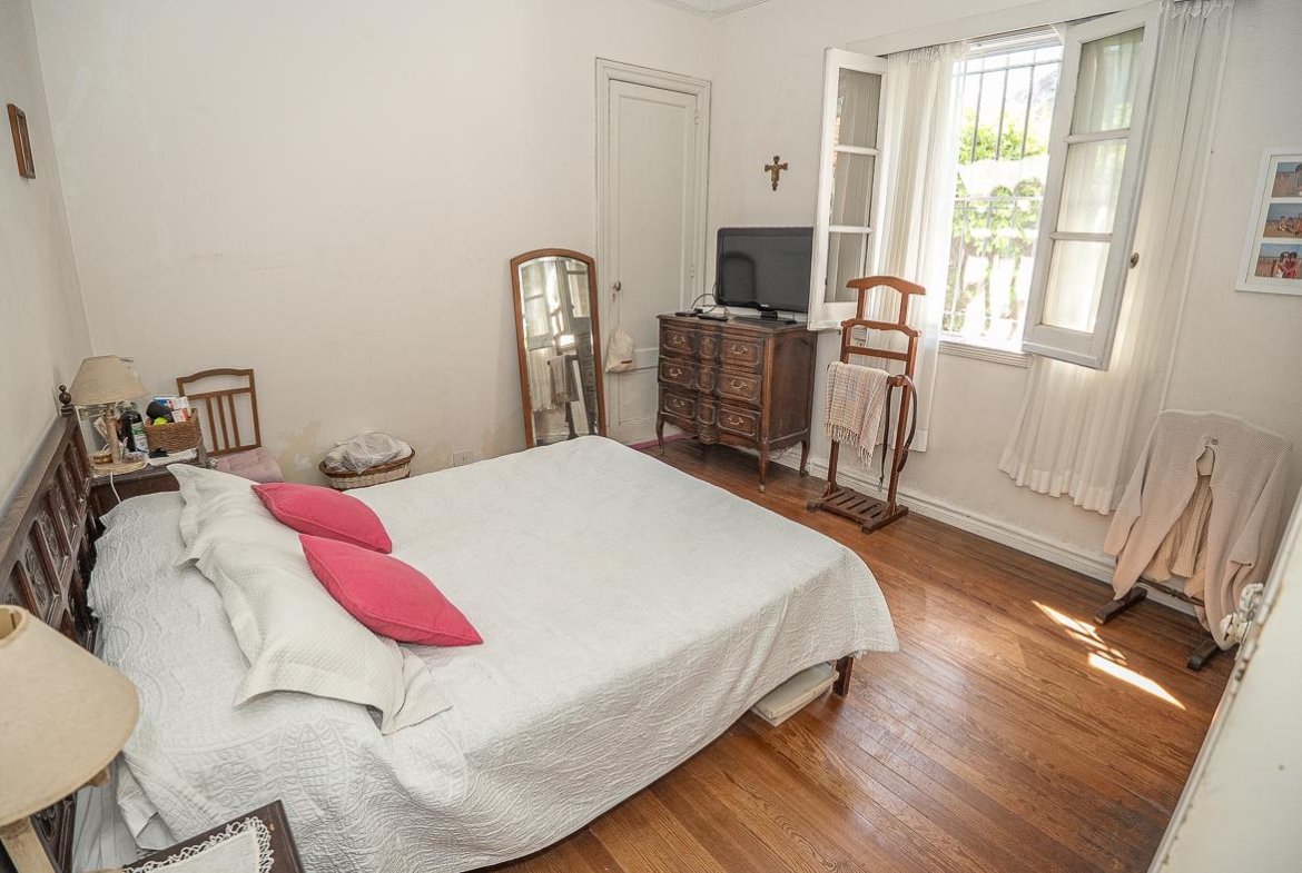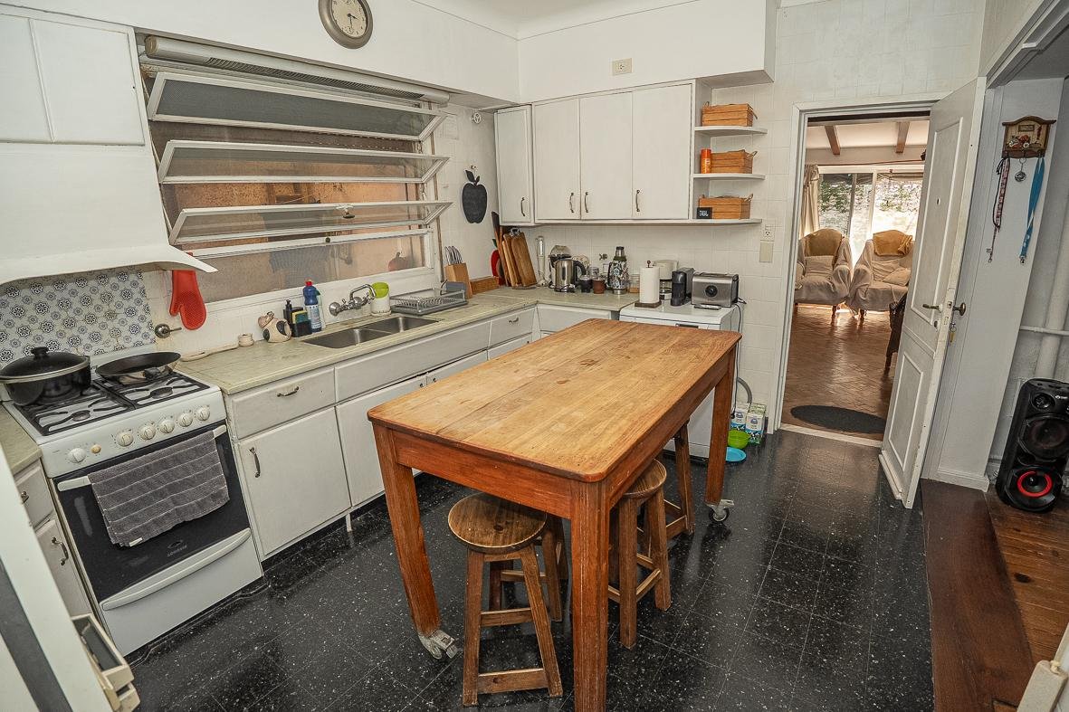 El ingreso se realiza a través de un jardín frontal, que aporta retiro y privacidad, dando paso al living principal y al comedor formal, ambos con cómodas dimensiones y buena iluminación natural. La propiedad cuenta con tres dormitorios bien distribuidos y un escritorio independiente, ideal para home office, estudio o espacio multifuncional. Dispone de cocina comedor funcional, con correcta circulación y conexión hacia un estar comedor adicional, generando distintos espacios para la vida diaria y reuniones sociales. Desde el sector lateral se accede a un patio con lavadero independiente, aportando practicidad al área de servicio. La vivienda incluye además un sótano, ideal para cava de vinos, guardado o espacio de apoyo. Desde el interior se accede al amplio jardín trasero, arbolado y con excelente privacidad, donde se encuentra un cuarto de guardado o quincho, espacio versátil para encuentros y usos recreativos. El jardín cuenta con parrillero, conformando un entorno ideal para disfrutar al aire libre. La propiedad posee calefacción central por caldera, brindando confort térmico en todos los ambientes.