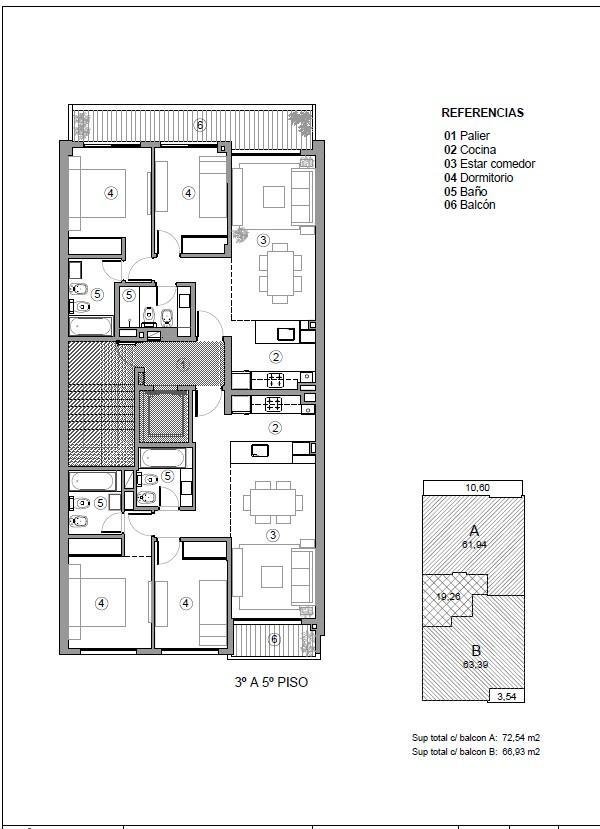 Unidad destacada – Semipiso 2 dormitorios (contrafrente):