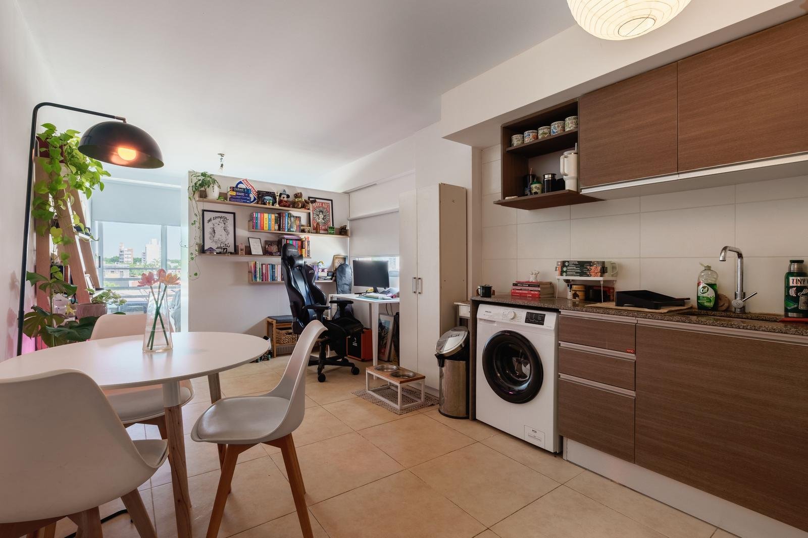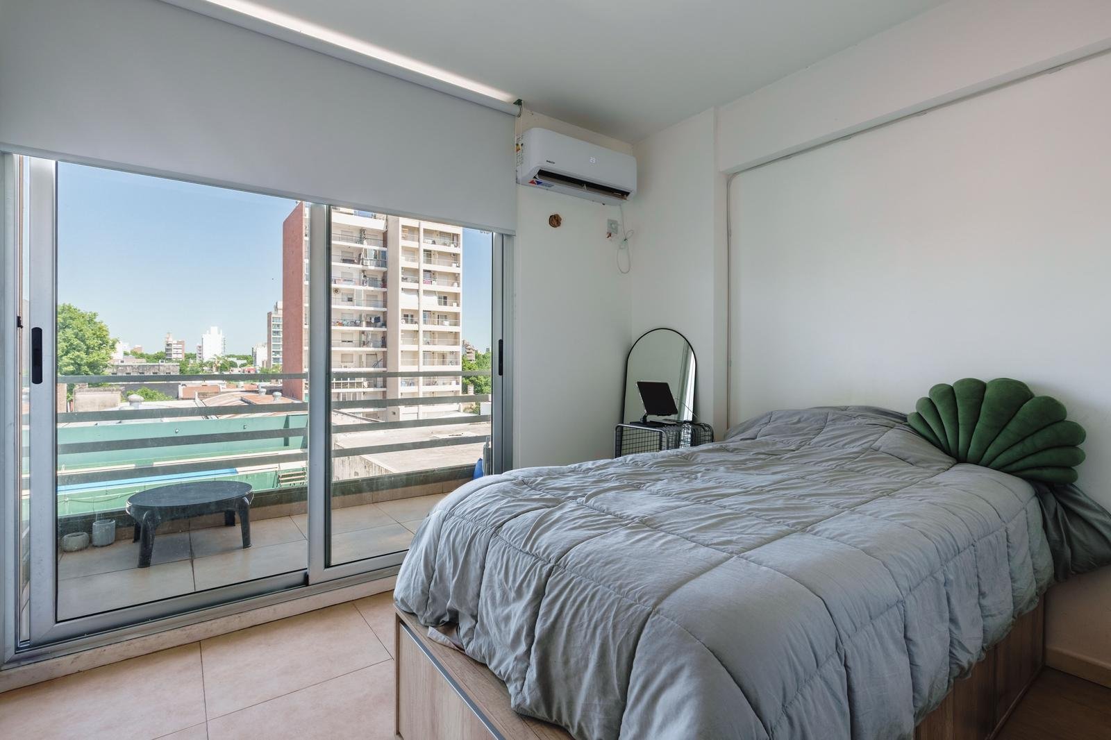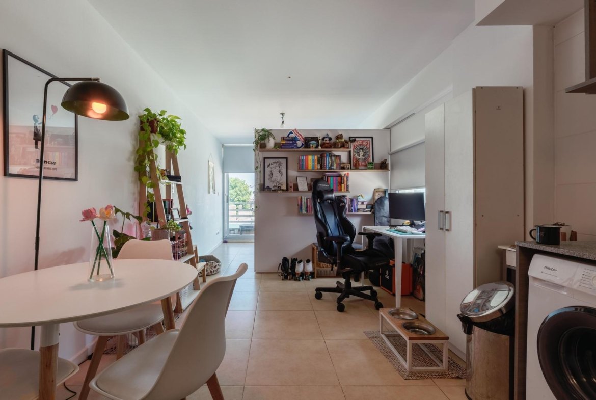 La unidad cuenta con un ambiente único cómodo y bien proporcionado, con cocina integrada equipada con alacenas de gran capacidad, lo que brinda un óptimo espacio de guardado, y baño completo de buenas dimensiones. El balcón corrido aporta ventilación natural, luz durante gran parte del día y un espacio ideal para disfrutar al aire libre en un entorno tranquilo. El edificio ofrece piscina, un diferencial muy valorado tanto para uso propio como para renta, y mantiene bajas expensas, lo que mejora notablemente la ecuación de inversión. Una opción ideal para renta permanente o temporaria, estudiantes, profesionales o inversores que buscan alta demanda y fácil comercialización.