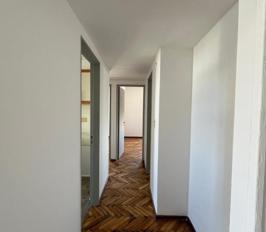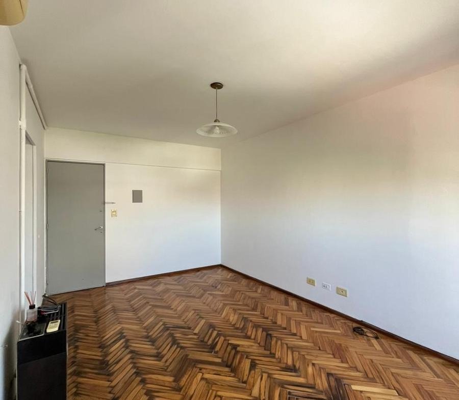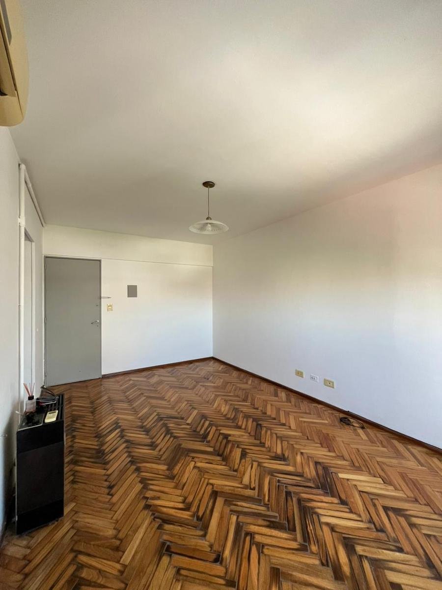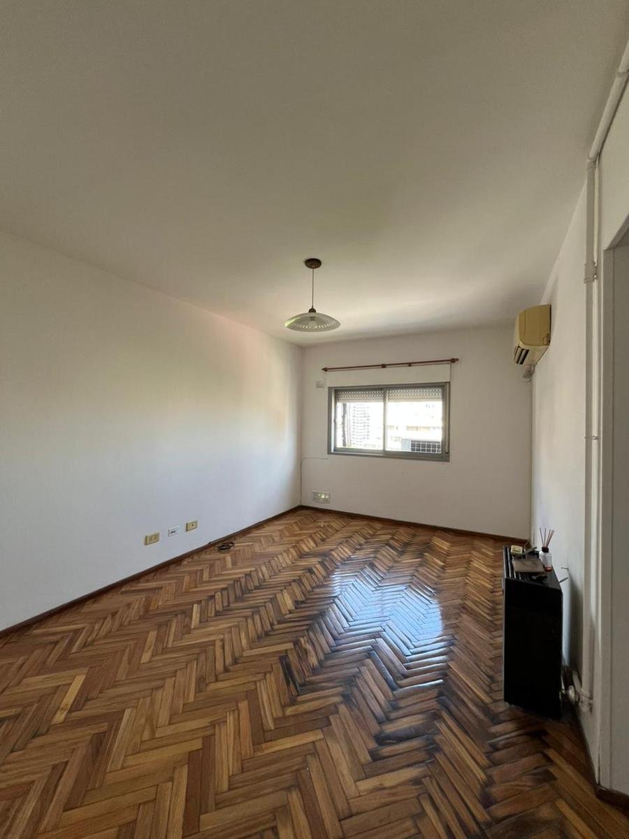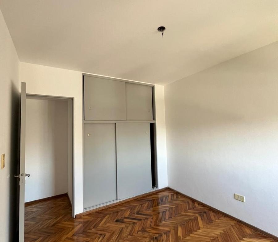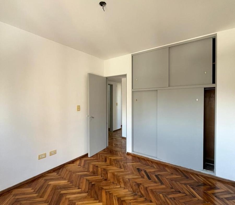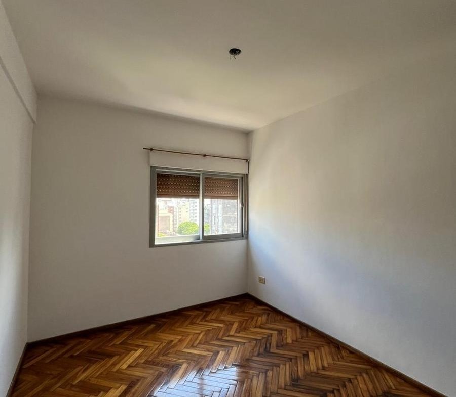 Departamento contrafrente de dos dormitorios en piso 10. Ingreso a living comedor, cocina independiente con muebles de bajo mesada y alacenas totalmente renovados, doble bacha y mesada de granito. Con espacio técnico para heladera y lavarropas. Dos dormitorios con placard y baulera, orientación al Norte. Cómodo baño en perfecto estado de mantenimiento. Los ambientes tienen pisos de madera parquet y en los espacios húmedos cerámicos. Es muy luminoso tanto en el living como en las habitaciones. El departamento tiene cochera en el edificio. Se encuentra en excelente estado.