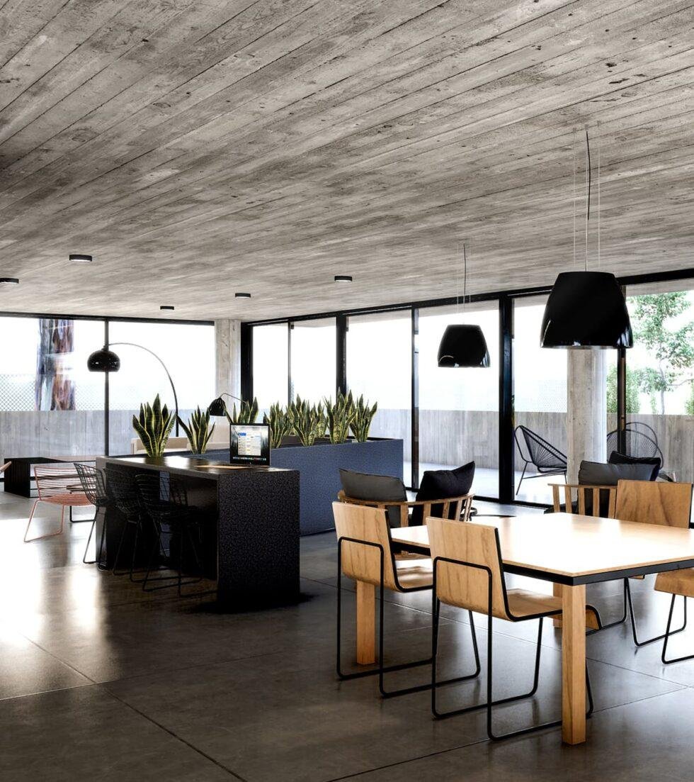 TERMINACIONES• Cielorrasos de Living de Losa Vista de Hormigón, cielorrasos de dormitorios y Paredes en yeso terminados con pintura Látex.• Aberturas de aluminio de alta prestación con DVH.