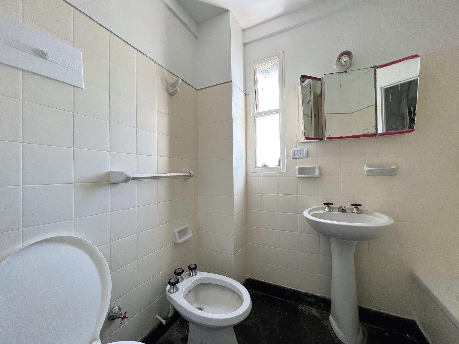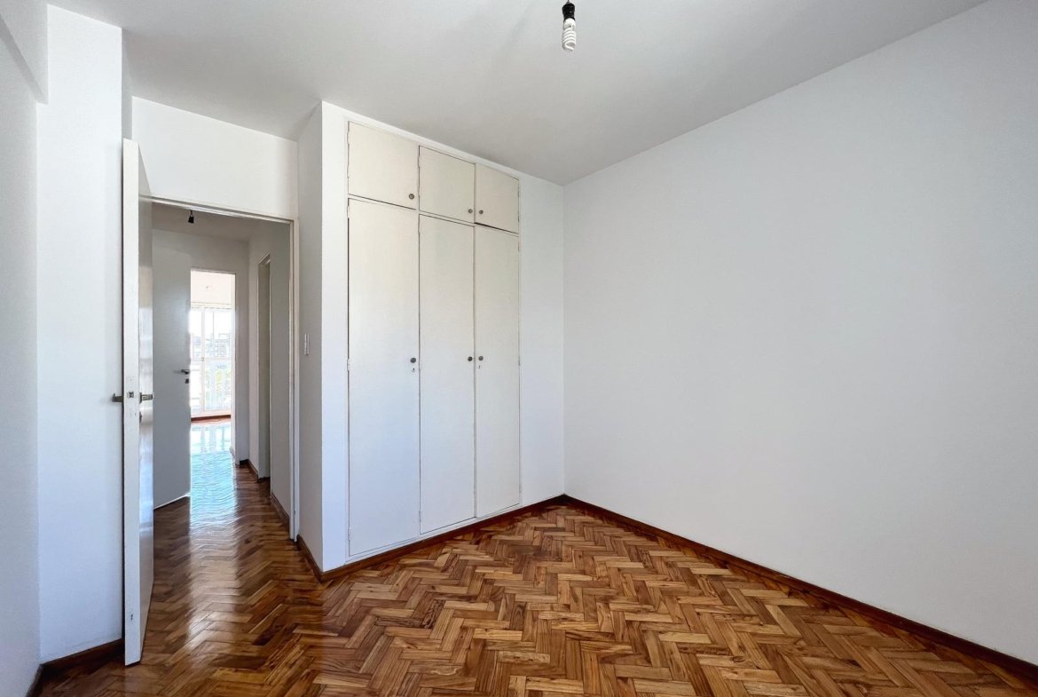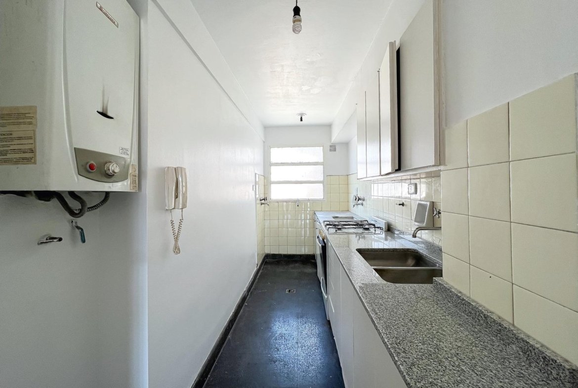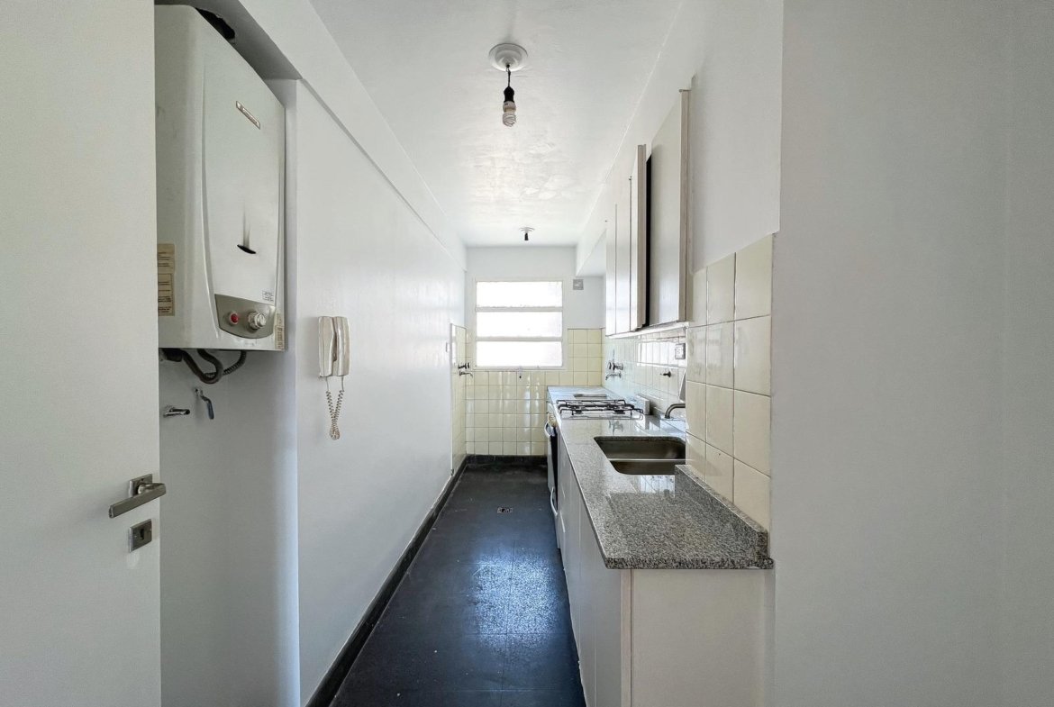 Ingreso al living comedor con balcón corrido. Cocina separada con lavadero sectorizado, muebles bajo mesada y alacenas de melamina, mesada de mármol, y bachas de acero inoxidable, todo en muy buen estado de uso. Dos amplios dormitorios con placares empotrados que brindan espacio de guardado. Baño completo con loza sanitaria, apliques y grifería acorde a su época en excelente estado, ventilación natural. Pisos de parquet plastificados en perfecto estado, combinados con granito en espacios húmedos.
