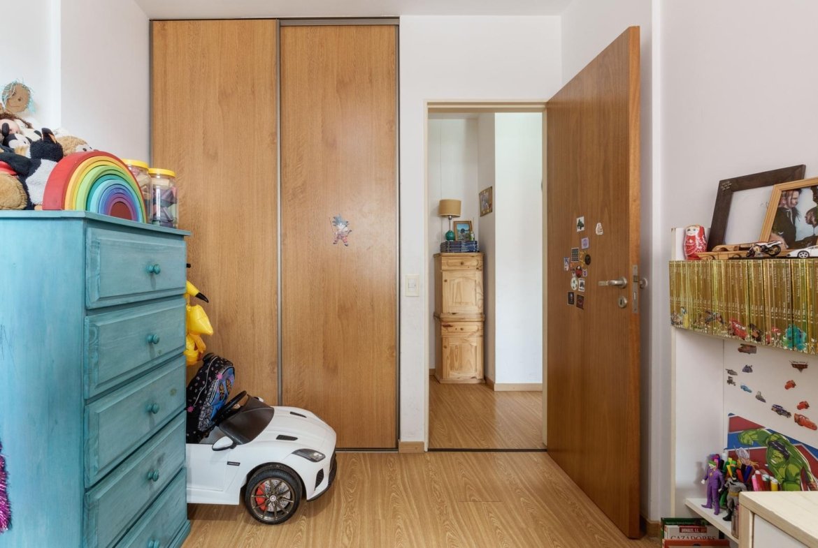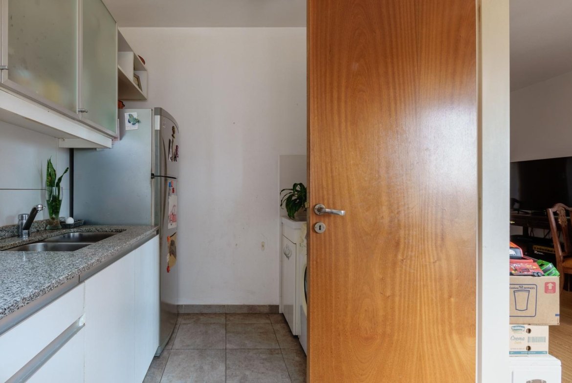 Departamento de dos dormitorios con balcón, ubicado en una zona estratégica de la ciudad, que se destaca por su muy buena distribución, luminosidad y estado de conservación. La propiedad ofrece ambientes cómodos y funcionales, ideales tanto para vivienda permanente como para inversión. El ingreso a la unidad se realiza desde el palier a través de una puerta de madera con mirilla y doble cerradura, lo que brinda mayor seguridad. Al ingresar se desarrolla el living–comedor, un ambiente amplio y luminoso con pisos flotantes símil madera, paredes pintadas en tonos claros y cielorraso en excelente estado. Este espacio cuenta con puerta-ventana corrediza de aluminio con mosquiteros y cortinas tipo black out, lo que permite un óptimo ingreso de luz natural y ventilación durante todo el día. Desde el living se accede al balcón, que posee pisos cerámicos, rejas de protección y aplique de iluminación, constituyendo un espacio ideal como expansión para disfrutar del aire libre. La cocina es independiente, lo que aporta mayor comodidad en el uso cotidiano. Se encuentra equipada con mesada de mármol granítico, bacha doble de acero inoxidable con grifería monocomando, mobiliario completo de bajo mesada y alacenas de madera, además de cocina a gas de cuatro hornallas con horno y calefón. El ambiente cuenta también con ventana de aluminio que proporciona ventilación natural, conexión para lavarropas y un espacio adicional con barra flotante de madera, que puede utilizarse como sector de apoyo o comedor diario. A través de un paso distribuidor se accede al sector íntimo del departamento. Allí se encuentran dos dormitorios de buenas dimensiones, ambos con pisos flotantes símil madera, ventanas de aluminio con mosquiteros y cortinas, lo que garantiza excelente iluminación y ventilación natural. El dormitorio principal cuenta con placard empotrado con puertas corredizas, equipado interiormente con estantes, barral y cajoneras, brindando gran capacidad de guardado. El segundo dormitorio también dispone de placard completo, con una de sus puertas espejada, lo que aporta funcionalidad y amplitud visual al ambiente. El baño es completo con bañera, revestido en cerámicos hasta el techo y equipado con sanitarios de loza, bidet, vanitory con mueble de guardado, espejo y accesorios. El ambiente cuenta con ventilación natural mediante ventiluz. En términos generales, el departamento presenta muy buen estado de mantenimiento, con aberturas de aluminio, mosquiteros, cortinas de enrollar y black out, además de instalación eléctrica con tablero general, térmica y disyuntor. Una propiedad que combina ambientes amplios, buena luminosidad y una distribución cómoda, ideal para quienes buscan vivir con confort en una zona bien conectada de la ciudad o realizar una inversión inmobiliaria sólida.