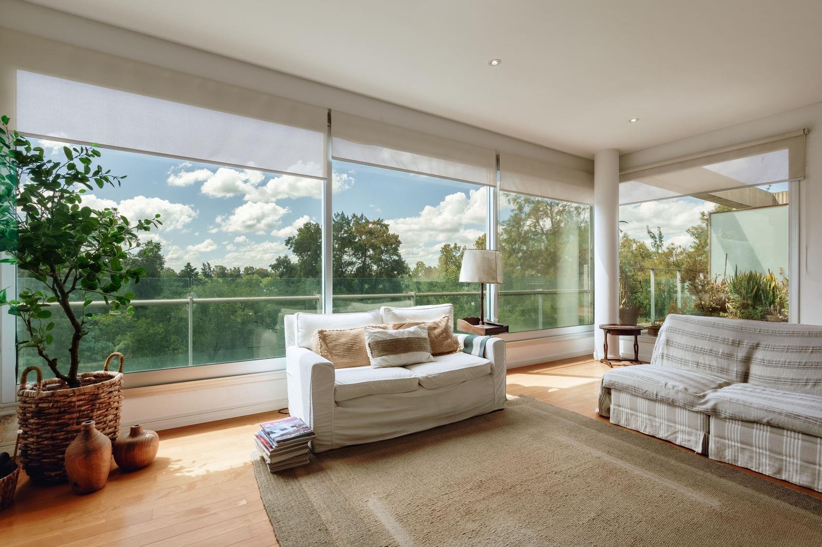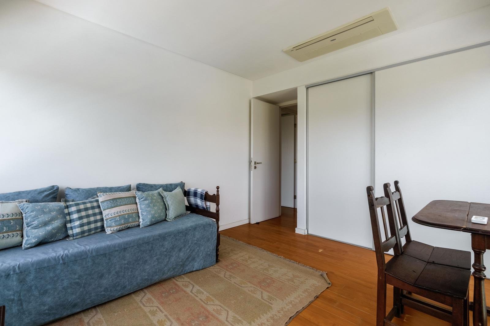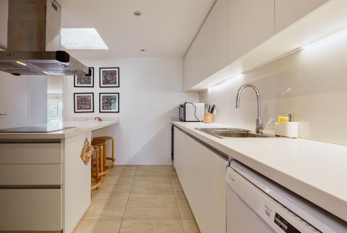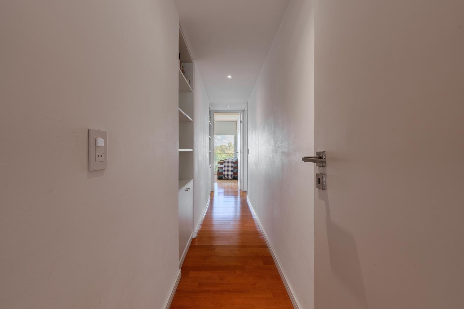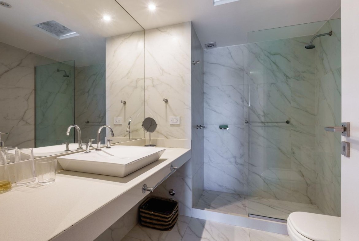 El ingreso conduce a un amplio estar–comedor, con un sutil desnivel hacia el estar diario que aporta jerarquía y diferenciación de ambientes. El sector social se destaca por su orientación norte, amplios ventanales de piso a techo y salida a un balcón aterrazado con parrillero, generando una expansión ideal para reuniones y disfrute al aire libre. La ventilación cruzada garantiza excelente circulación de aire y luminosidad natural en toda la unidad. La cocina–comedor semi integrada se encuentra separada virtualmente mediante puerta corrediza de vidrio repartido. Cuenta con isla central, mesada de Silestone blanco, mobiliario completo bajo mesada, bacha de acero inoxidable marca Johnson con grifería monocomando, anafe eléctrico de cuatro hornallas, horno empotrado independiente, campana extractora y espacios técnicos para lavavajillas, microondas y heladera. Desde allí se accede a un lavadero independiente con despensa y salida a un balcón cubierto destinado al tendido de ropa. La unidad dispone de tres dormitorios, todos con placares empotrados de piso a techo con interiores diseñados y puertas corredizas. El dormitorio principal cuenta con vestidor y baño en suite. En total, posee tres baños: toilette de recepción, baño completo con bañera y baño en suite con duchador, ambos con mamparas de vidrio, mesadas de Silestone, bachas de cerámica marca Ferrum, espejos y apliques colocados. Las terminaciones son de calidad premium: aberturas DVH de primera línea con mosquiteros y black out a medida, pisos de ingeniería símil madera en todos los ambientes principales y porcelanato en baños y lavadero. El departamento cuenta con calefacción por radiadores en todos los ambientes mediante caldera central, climatización con aires acondicionados empotrados en techo, y provisión de agua caliente central. El proyecto Aldea Dock Haus se compone de planta baja y cuatro pisos, distribuidos en cuatro módulos con ascensor independiente cada uno, totalizando 38 unidades de 1, 2 y 3 dormitorios, cocheras, bauleras y espacios comunes. Ofrece amenities de categoría: gimnasio equipado, spa, piscina con solárium, dos quinchos con parrillero, vestuarios, SUM, sala de juegos para niños y amplio jardín. El edificio cuenta con seguridad privada nocturna, alarma perimetral, control de accesos, portón automatizado y cámaras de seguridad.