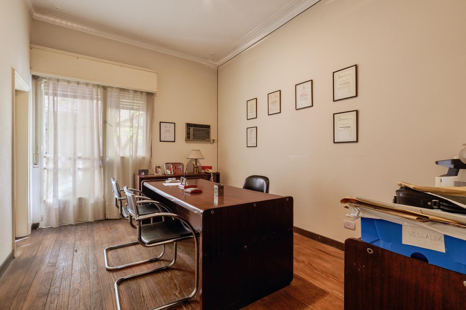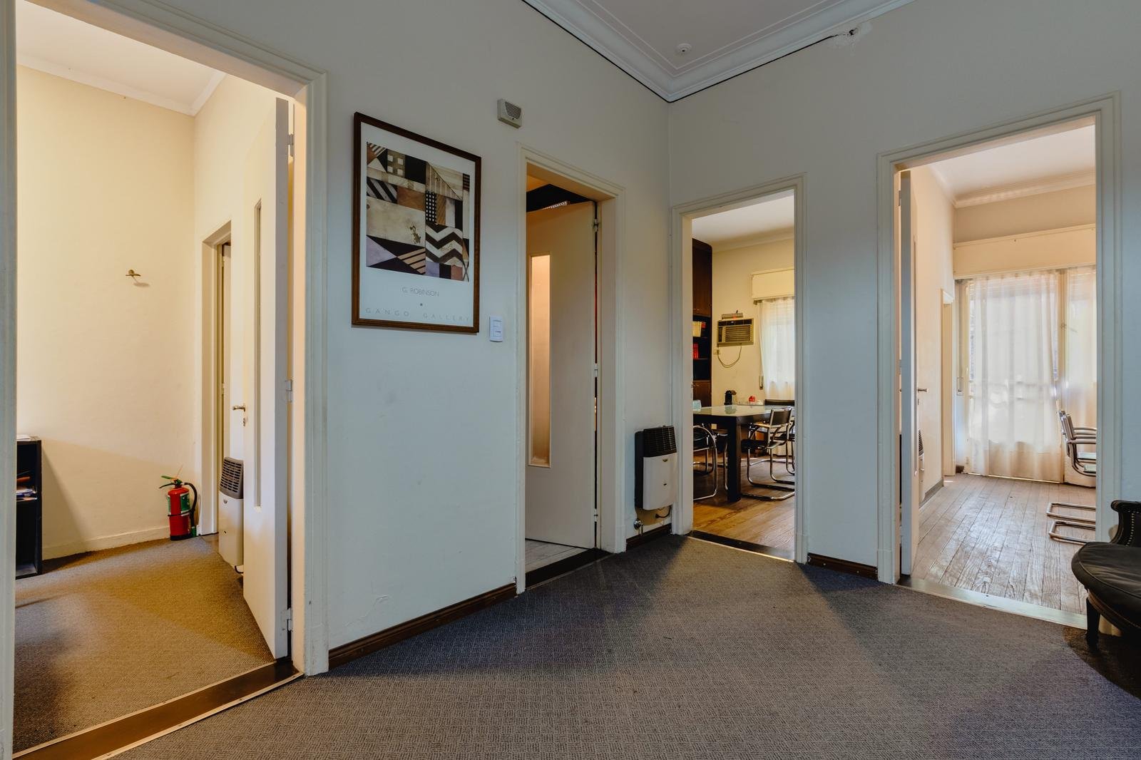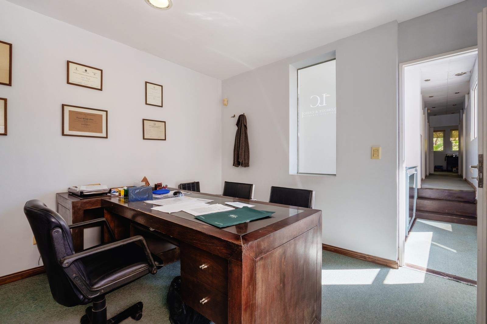 En el primer piso, el ingreso se realiza a través de una recepción principal que organiza el acceso a las diferentes áreas. Al frente se ubican dos amplias salas de reuniones con ventanales a la calle Zeballos y salida a balcón, lo que permite gran luminosidad y ventilación natural. Hacia el contrafrente se encuentra una oficina privada, un archivo, un baño completo y un sector de office y depósito, ideales para el funcionamiento cotidiano del personal administrativo.Una escalera interna conecta con la planta alta, donde se desarrolla un sector de escritorios abiertos pensado para trabajo colaborativo, junto con tres oficinas privadas que garantizan privacidad y concentración. Además, cuenta con un segundo baño y un depósito adicional, ofreciendo una distribución equilibrada entre espacios de uso común y privado.Toda la propiedad presenta una excelente calidad constructiva, con divisiones internas en tabiques Durlock, pisos resistentes al tránsito, aberturas con vidrios traslúcidos que aportan luminosidad sin sacrificar privacidad, y detalles que optimizan la funcionalidad de cada ambiente.
