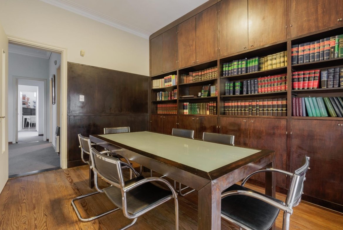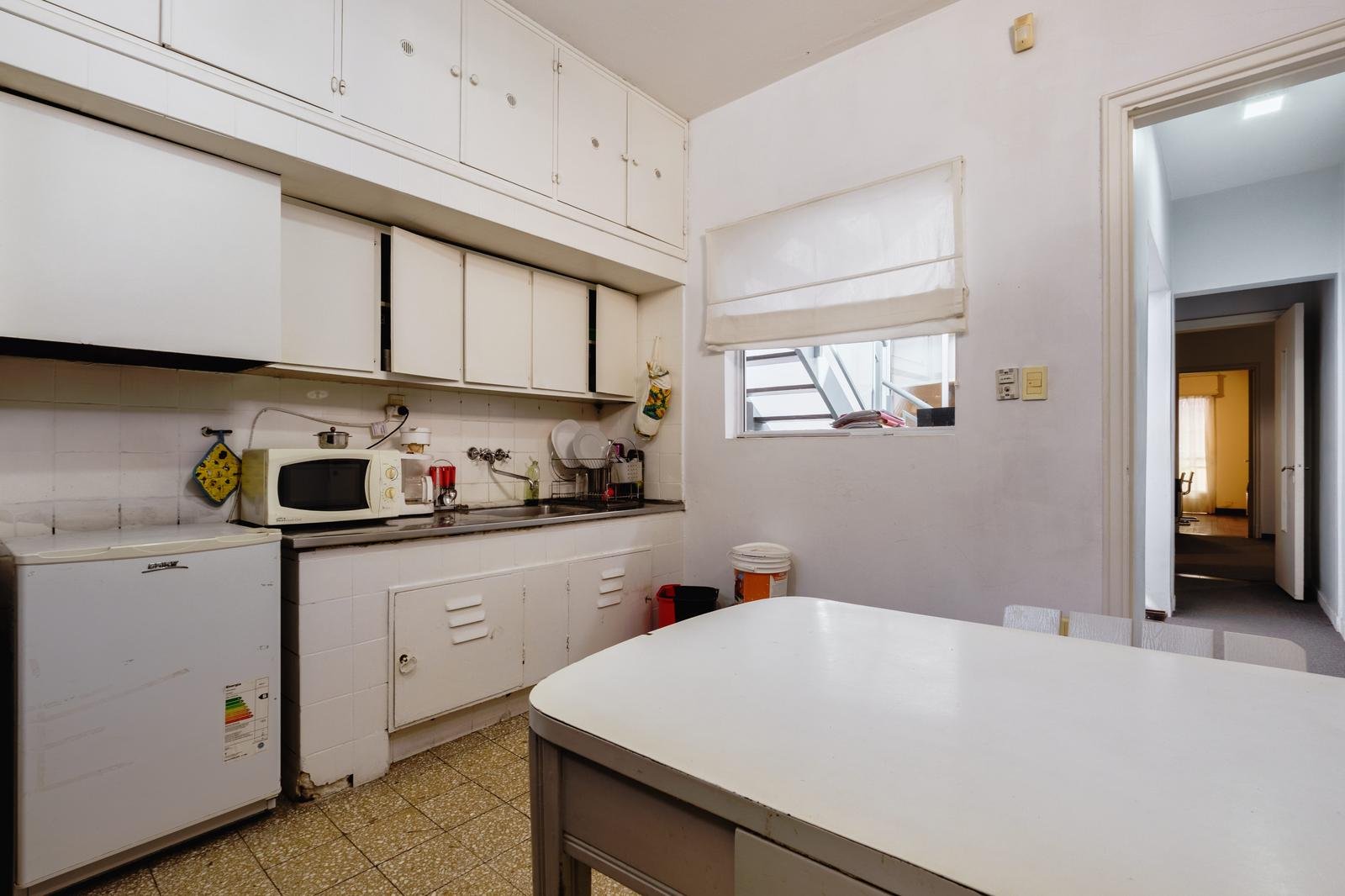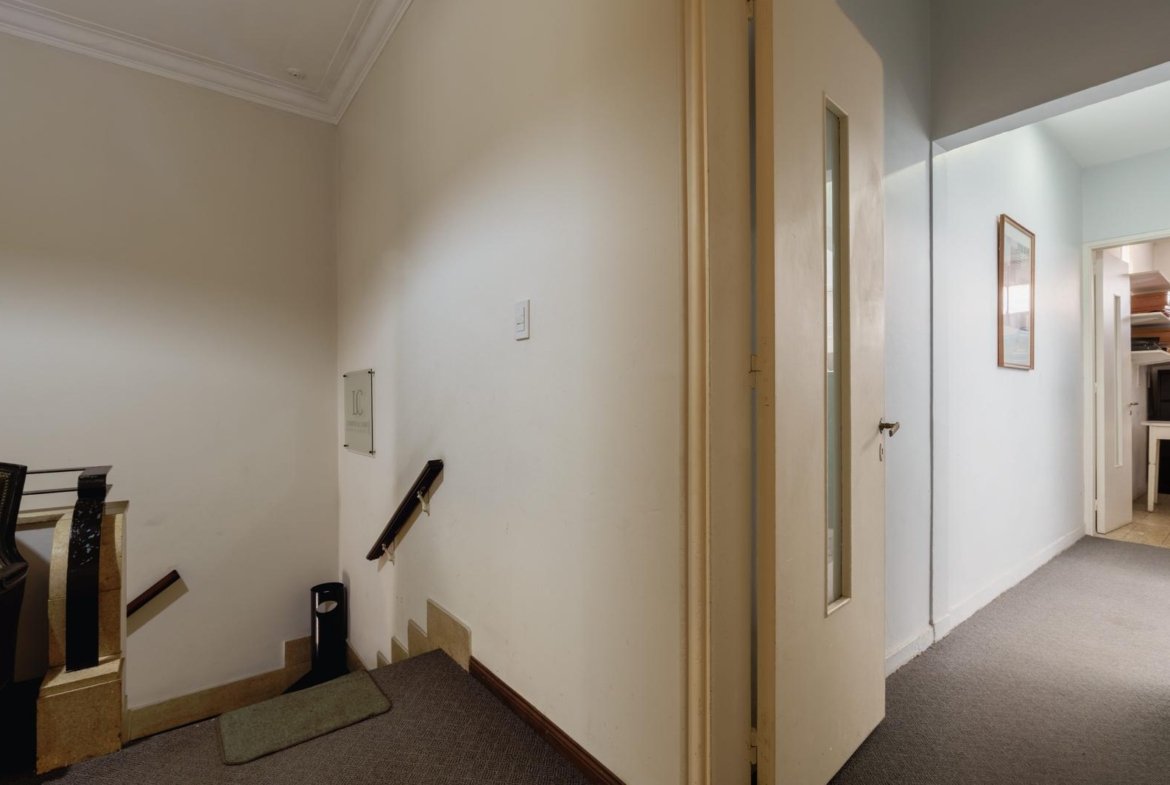 En el primer piso, el ingreso se realiza a través de una recepción principal que organiza el acceso a las diferentes áreas. Al frente se ubican dos amplias salas de reuniones con ventanales a la calle Zeballos y salida a balcón, lo que permite gran luminosidad y ventilación natural. Hacia el contrafrente se encuentra una oficina privada, un archivo, un baño completo y un sector de office y depósito, ideales para el funcionamiento cotidiano del personal administrativo.Una escalera interna conecta con la planta alta, donde se desarrolla un sector de escritorios abiertos pensado para trabajo colaborativo, junto con tres oficinas privadas que garantizan privacidad y concentración. Además, cuenta con un segundo baño y un depósito adicional, ofreciendo una distribución equilibrada entre espacios de uso común y privado.Toda la propiedad presenta una excelente calidad constructiva, con divisiones internas en tabiques Durlock, pisos resistentes al tránsito, aberturas con vidrios traslúcidos que aportan luminosidad sin sacrificar privacidad, y detalles que optimizan la funcionalidad de cada ambiente.