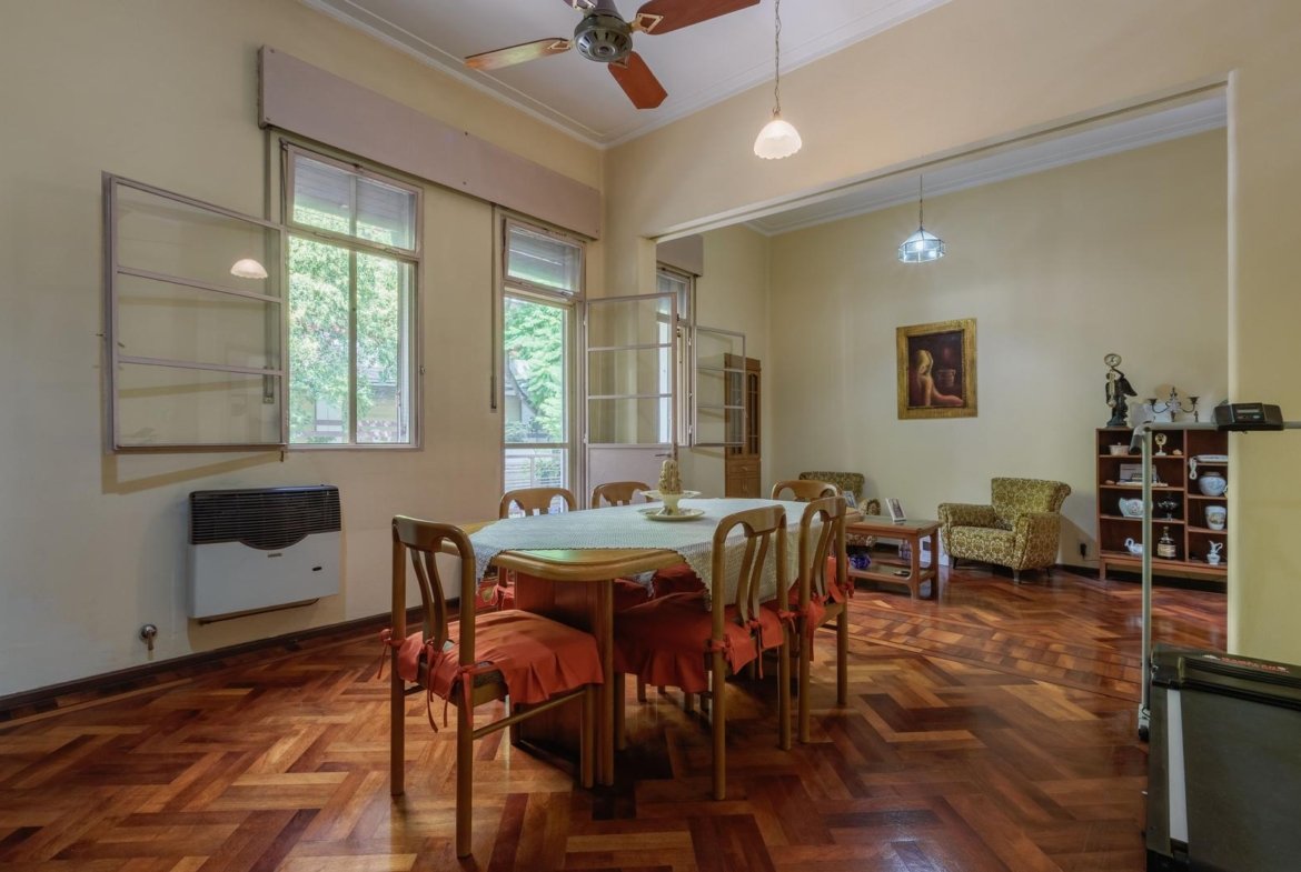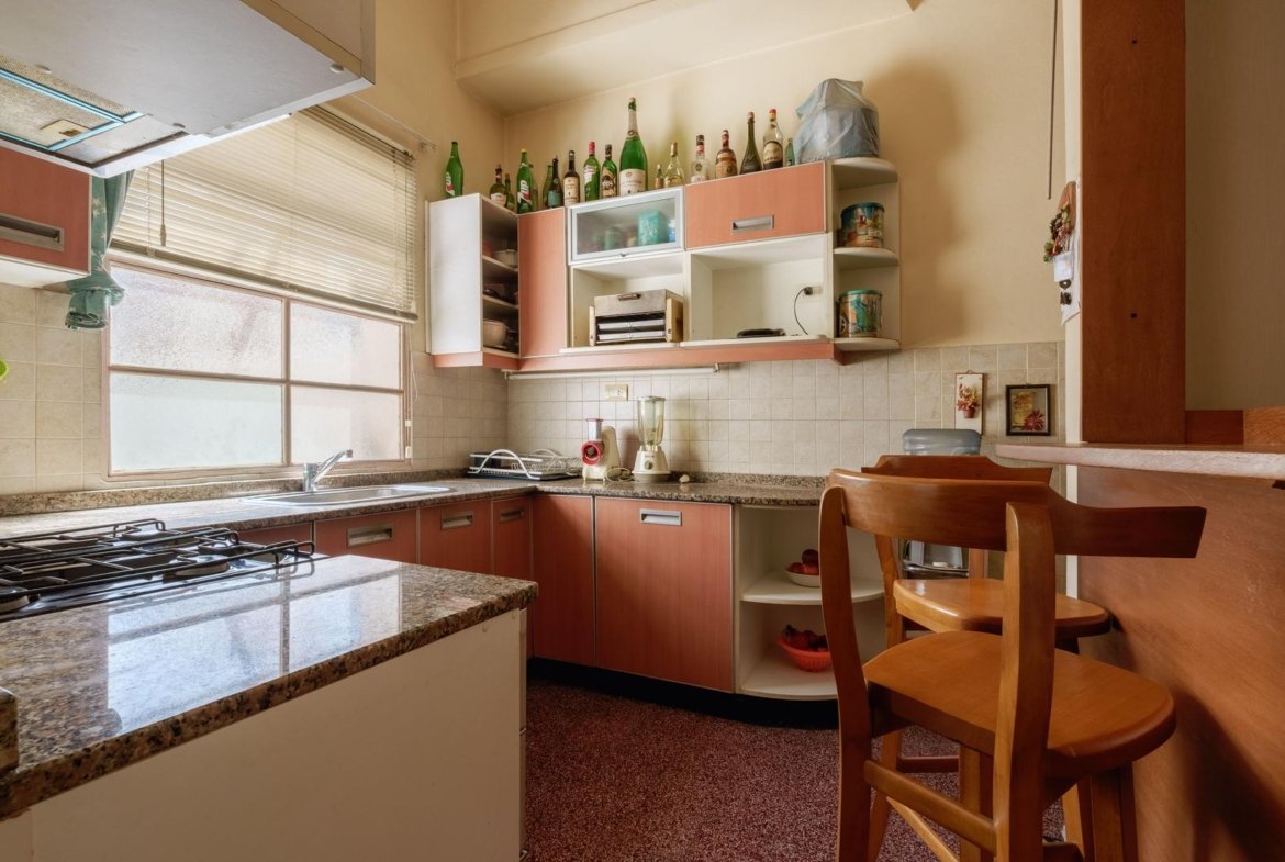 Cuenta con PB + nivel principal + terraza, que combina amplitud de ambientes, buena calidad constructiva y excelente ventilación natural. En planta baja se encuentra el ingreso a una cochera amplia para automóvil, brindando comodidad y seguridad para el estacionamiento. Desde allí se accede por escalera al primer piso, donde se desarrolla el sector principal de la vivienda. Al ingresar se encuentra un amplio living comedor, un ambiente espacioso y muy luminoso, con salida a un balcón al frente de buenas dimensiones, que aporta ventilación natural y una agradable relación con el exterior. La propiedad cuenta con tres dormitorios de buen tamaño, todos con excelente iluminación y ventilación, lo que garantiza comodidad para una familia o para quienes necesiten espacios adicionales de trabajo o estudio. La cocina es independiente, equipada con mobiliario completo de bajo mesada y alacenas, mesada de trabajo funcional y horno a gas, ofreciendo un espacio práctico para el uso cotidiano. La vivienda dispone además de calefacción a gas, lo que aporta confort durante los meses de invierno. En el segundo nivel se ubica el sector de lavadero y una amplia terraza de aproximadamente 60m², con vista despejada, ideal para disfrutar del aire libre, generar un espacio de descanso o utilizar como área recreativa. Este sector se destaca por su luminosidad y por las posibilidades de uso que ofrece. La propiedad presenta muy buena ventilación cruzada, gran ingreso de luz natural y sólida calidad constructiva, características que aportan confort y durabilidad. Se trata de una excelente opción para quienes buscan una vivienda amplia, con espacios exteriores y la privacidad propia de una propiedad tipo PH. La propiedad fue parcialmente refaccionada en el año 2006.