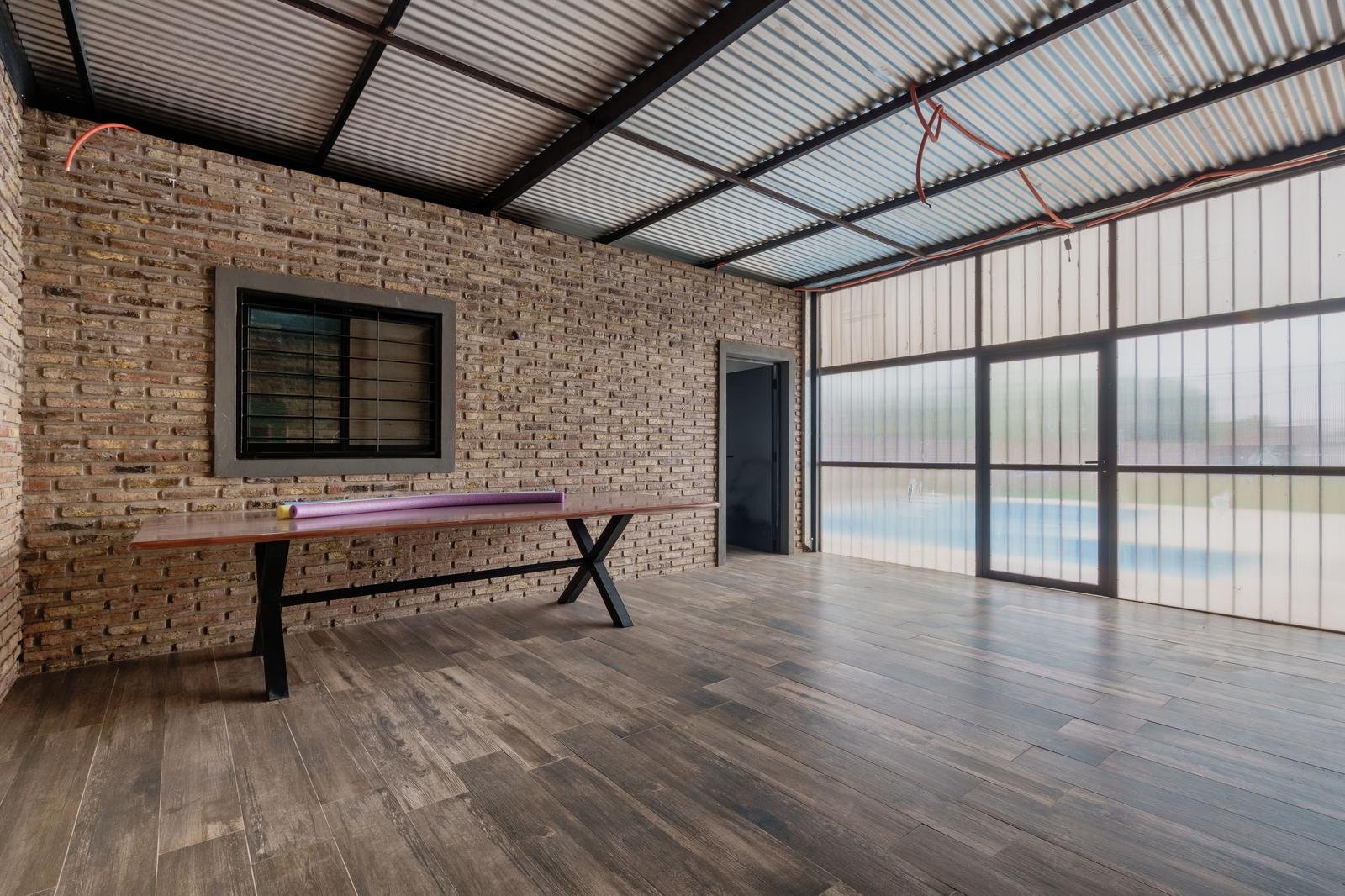La propiedad posee un amplio parque, ideal para disfrutar al aire libre, con pileta, pozo con bomba sumergible exclusiva para la piscina y sala de bombas sectorizada, brindando practicidad y buen mantenimiento del espacio.