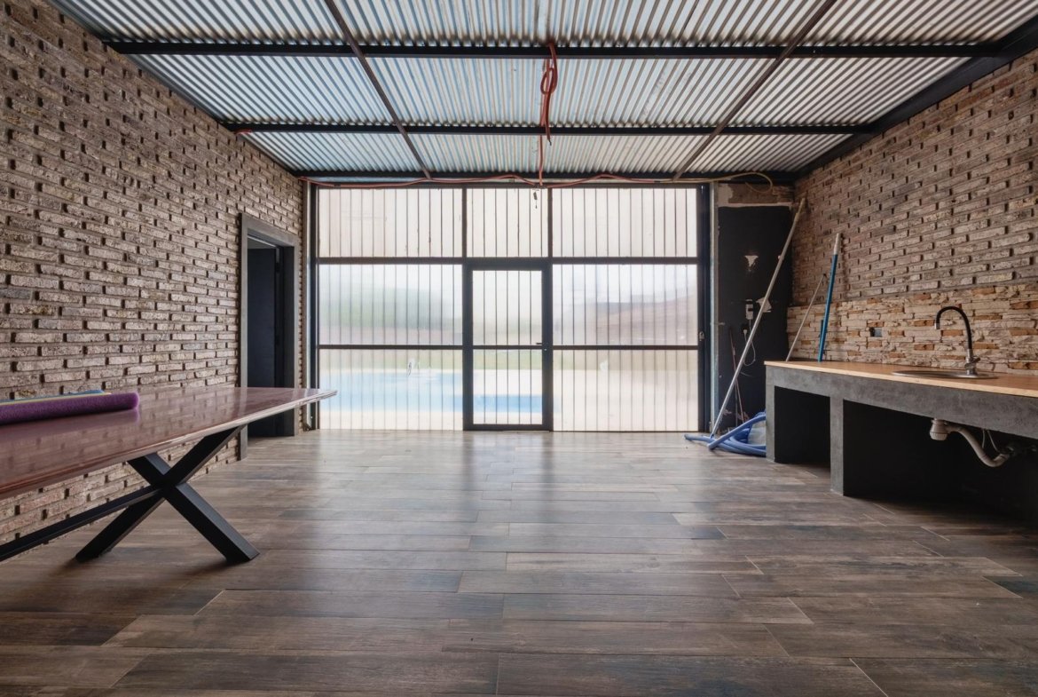 El quincho se encuentra totalmente implementado con parrillero, además dispone de un dormitorio y un baño completo con receptáculo de ducha, lo que lo hace funcional tanto para uso recreativo como para estadías prolongadas.