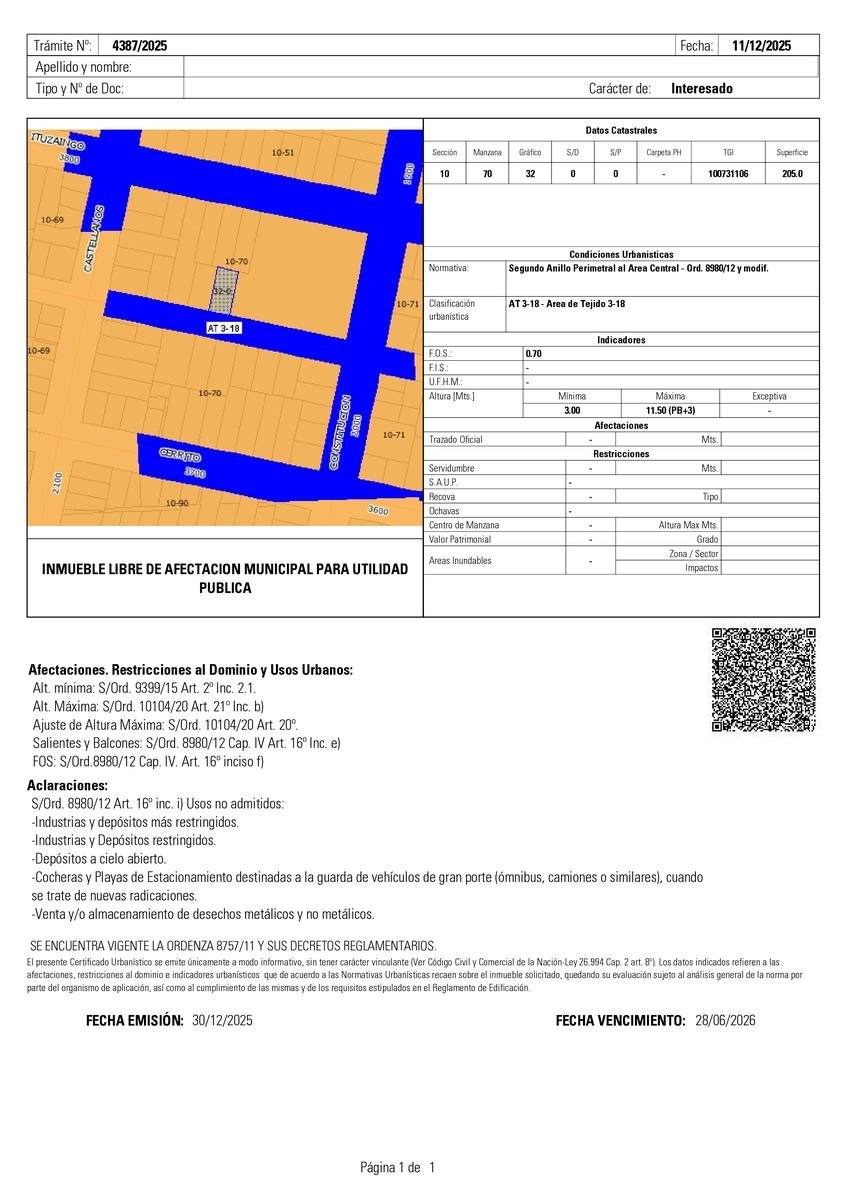 • Dirección Pasaje Gordillo 3750 - Terreno