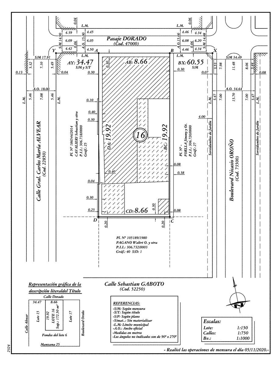 Lote en venta ubicado en Pasaje Dorado 2269, en una zona residencial consolidada de la ciudad, que se destaca por su tranquilidad y cercanía a servicios, ideal tanto para desarrollo como para inversión. El terreno cuenta con una superficie total de 172,50 m², con 8,66 metros de frente y 19,92 metros de fondo, conformando una geometría regular que permite un aprovechamiento eficiente del espacio para distintos proyectos constructivos. Por sus dimensiones y ubicación, se presenta como una excelente oportunidad para el desarrollo de vivienda unifamiliar, PH o inversión a futuro, en un entorno con buena proyección y crecimiento sostenido. Una propiedad que combina medidas funcionales, buena ubicación y potencial de desarrollo, ideal para quienes buscan invertir en tierra dentro de la ciudad.