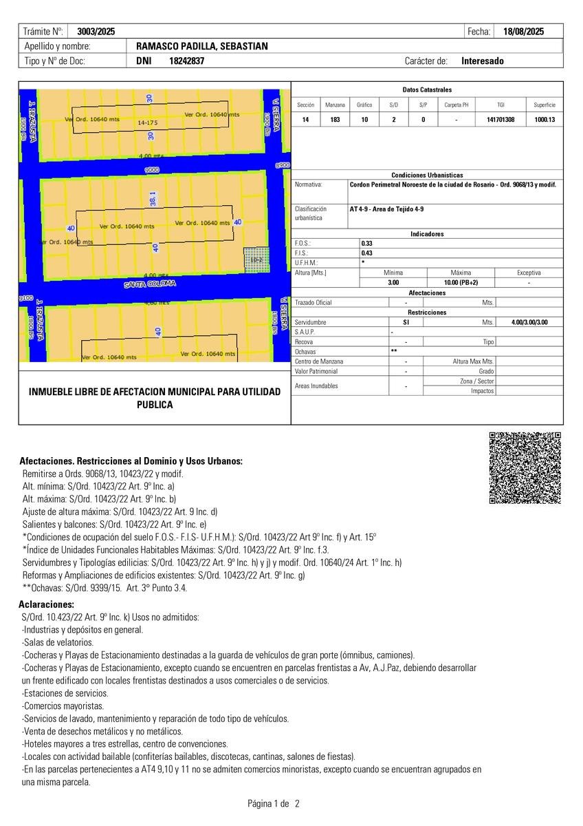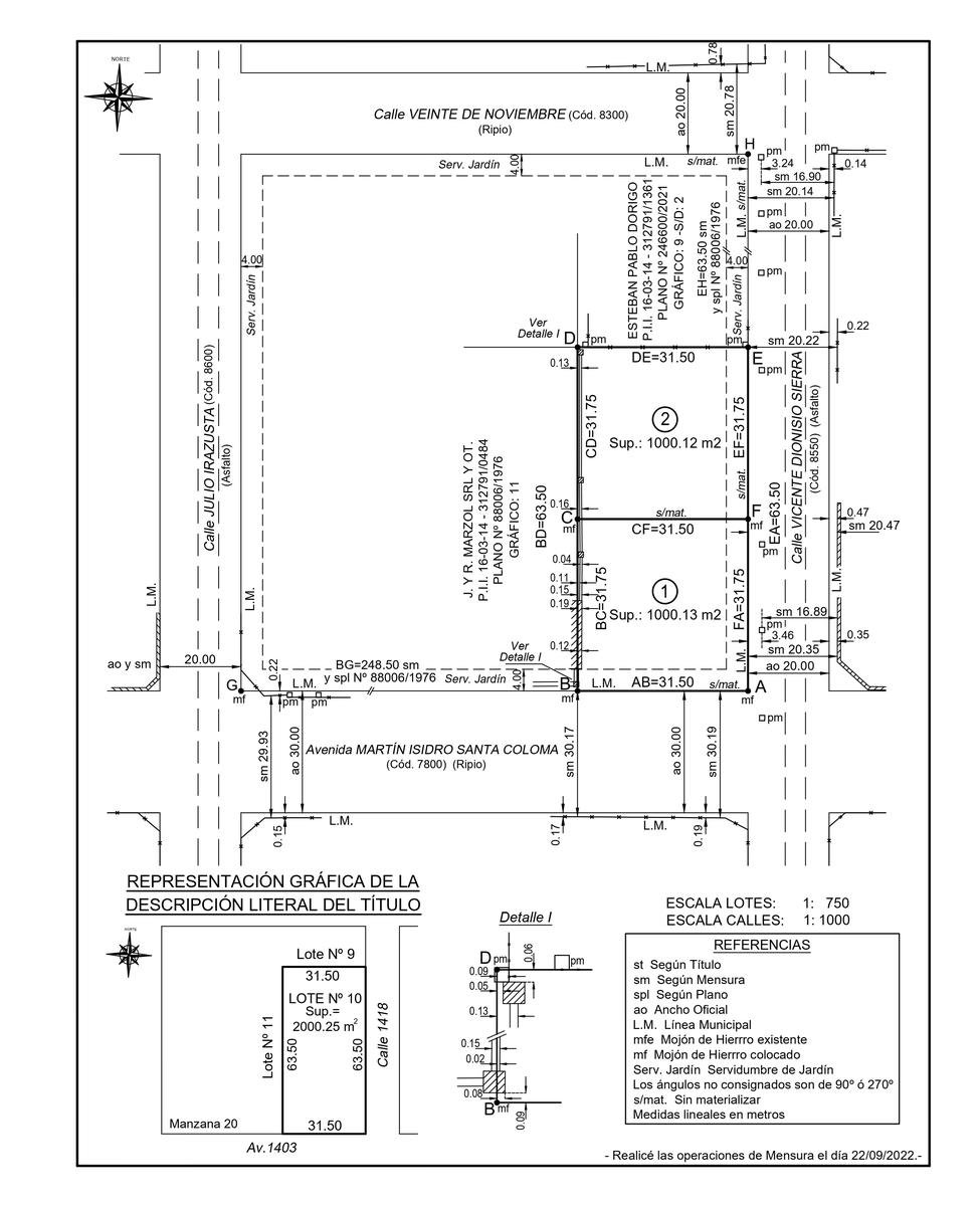 El Terreno 1 se ubica en la esquina de Santa Coloma y V. Sierra, con una superficie total de 1000,13 m². Sus medidas son 31,5 m de frente sobre calle Santa Coloma y 31,75 m sobre calle V. Sierra, lo que le otorga excelente visibilidad y versatilidad para proyectos arquitectónicos de gran categoría.
