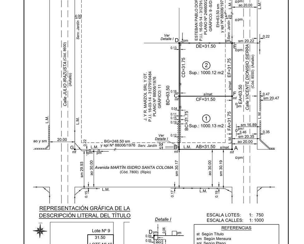 El Terreno 2 se encuentra sobre calle V. Sierra, con frente de 31,75 m y fondo de 31,5 m, totalizando 1000,12 m². Este lote se caracteriza por su ubicación interna y su disposición regular, ideal para desarrollar una vivienda familiar de amplias proporciones.
