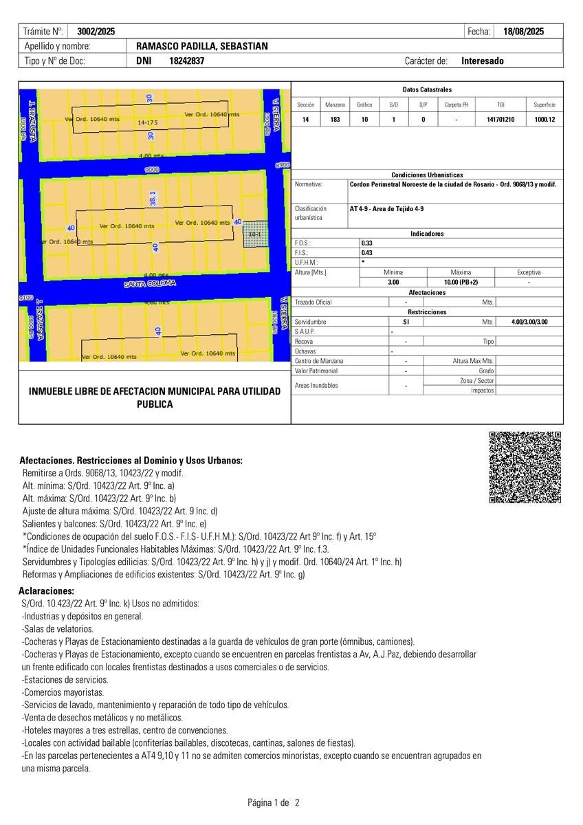 Ambos terrenos pueden adquirirse en conjunto, conformando así una superficie superior a los 2000 m², lo que multiplica las posibilidades de construcción y aprovechamiento del espacio.